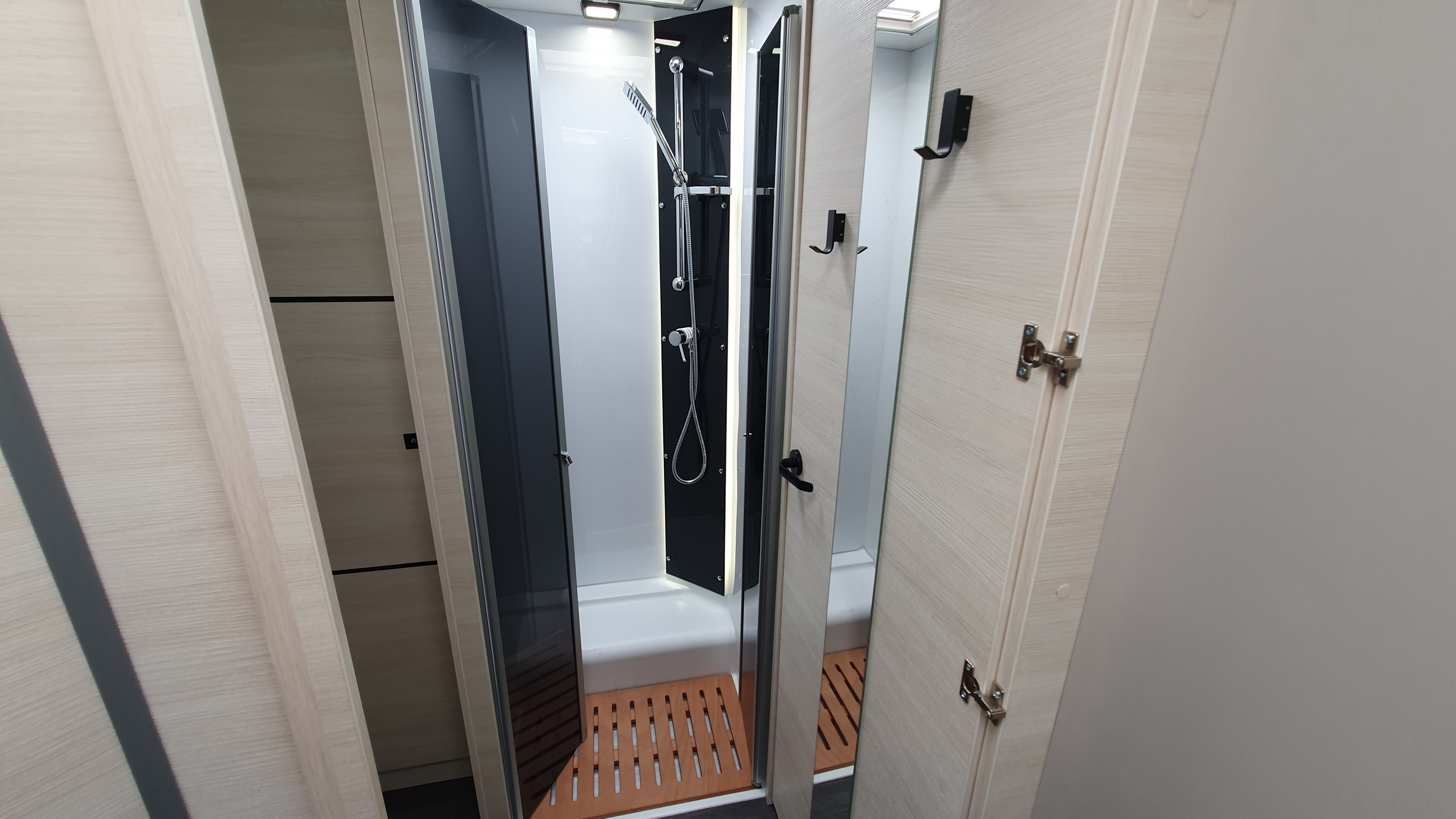 Con una lunghezza di 7,19 metri, questo camper dispone di un ampio garage regolabile in altezza grazie al sistema Easy Bed, perfetto per trasportare tutto il necessario per le tue avventure. La cucina lineare è attrezzata con un frigorifero trivalente da 134 litri, ideale per lunghi viaggi.
