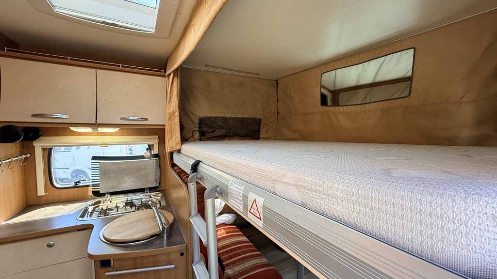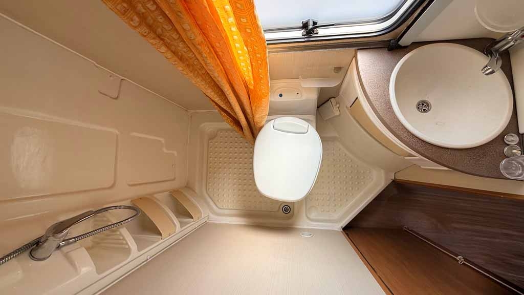 Il bagno è molto ampio, con doccia separata, mentre, la zona notte, è composta da un letto alla francese nella zona posteriore, oltre ad un letto basculante sopra la dinette; in aggiunta, trasformando la dinette, si ricava un ulteriore posto letto.