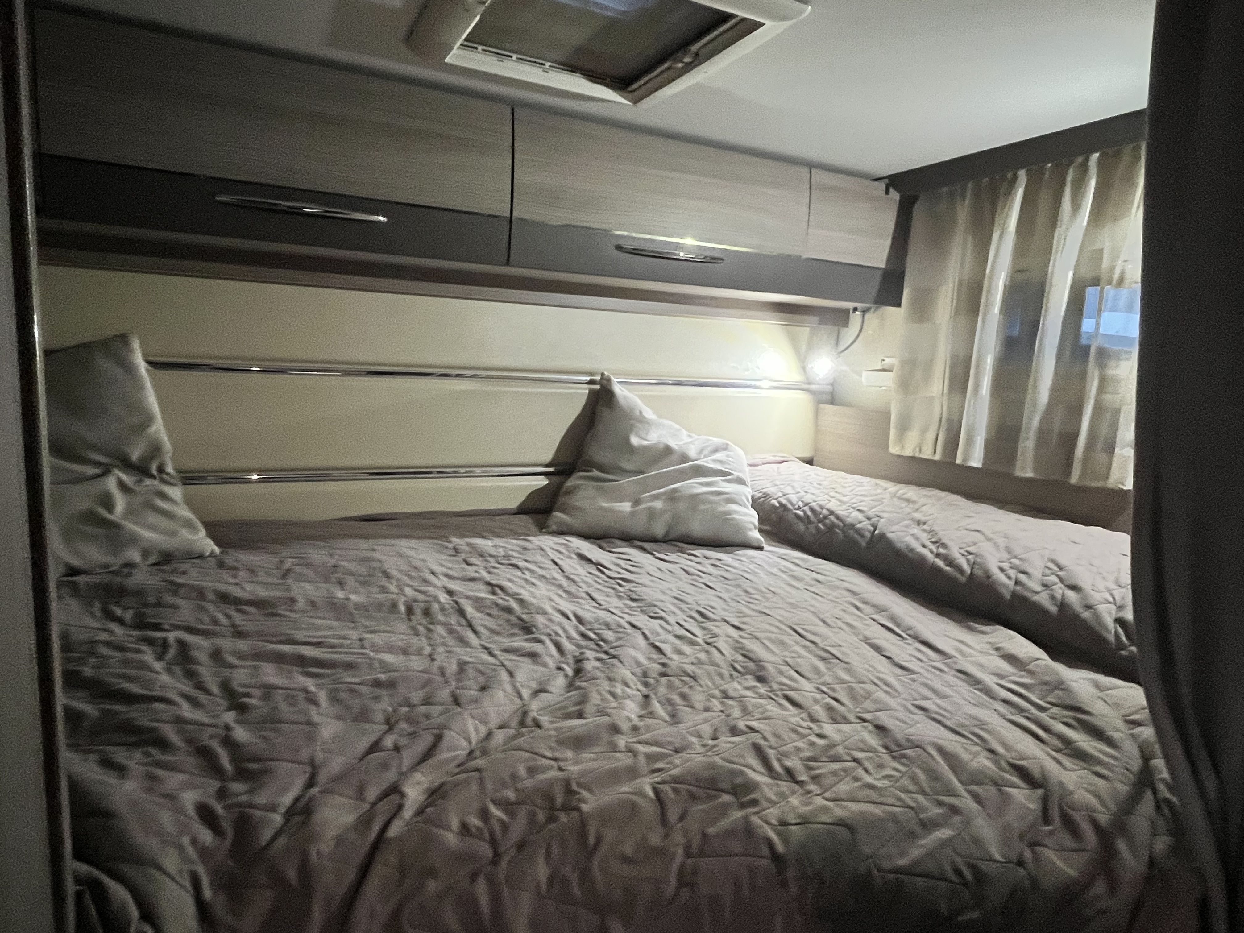 Letto trasversale in coda + basculante da un posto e possibile altro letto in dinette.