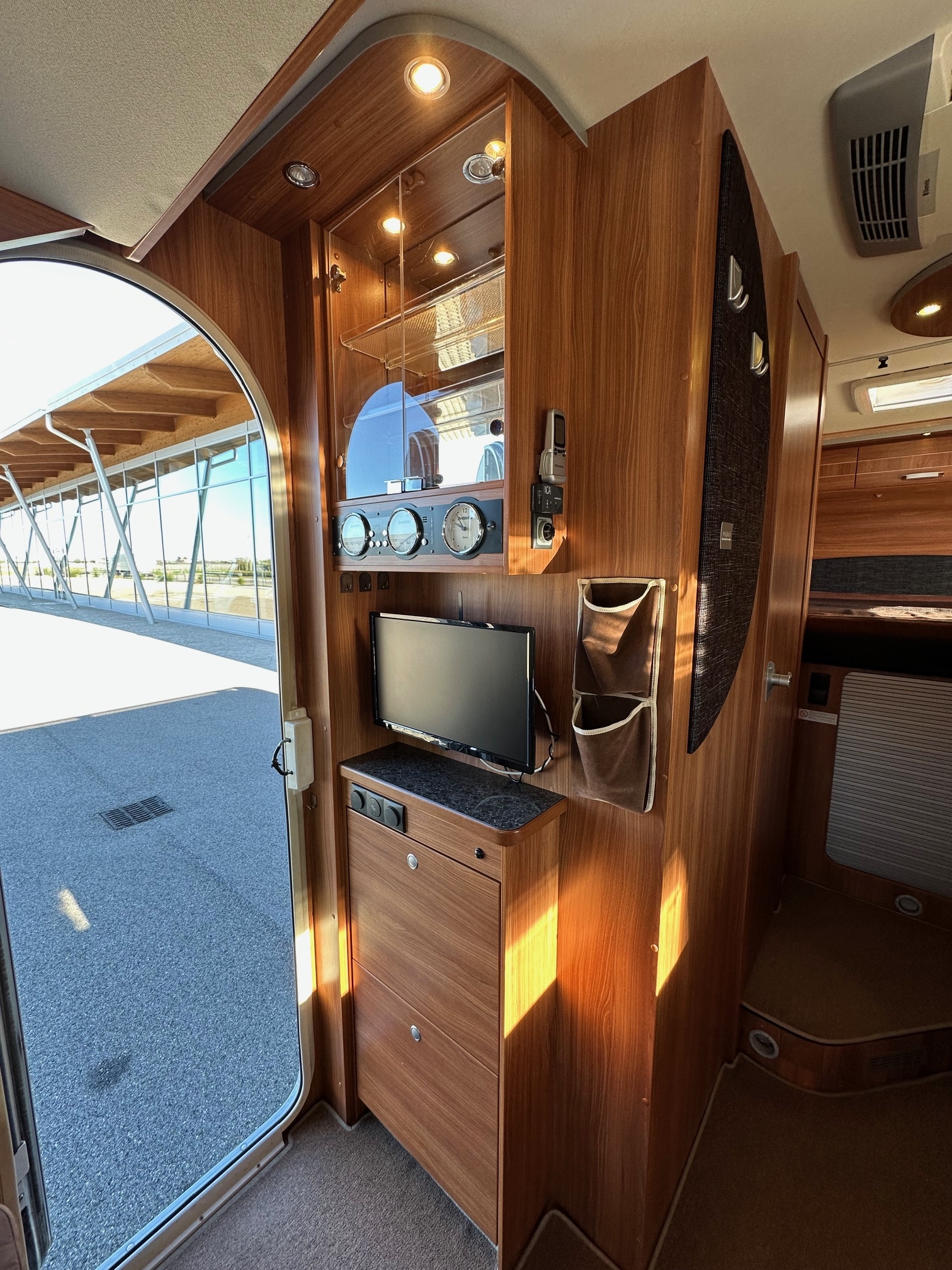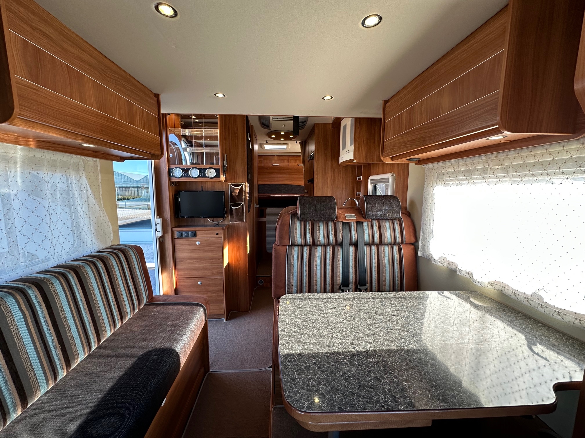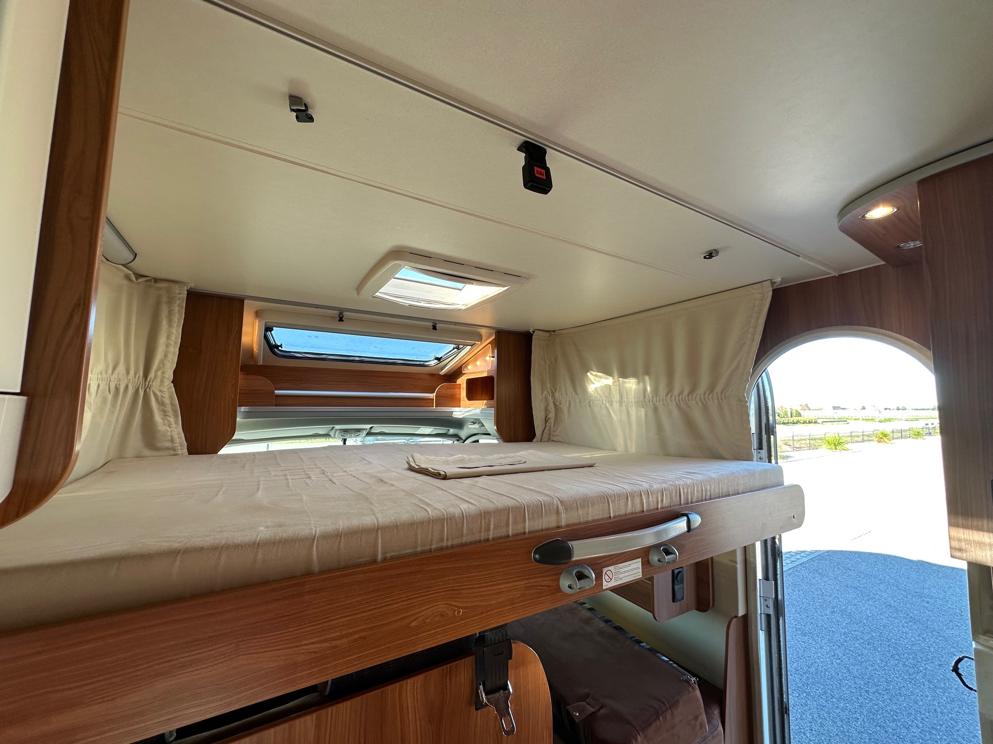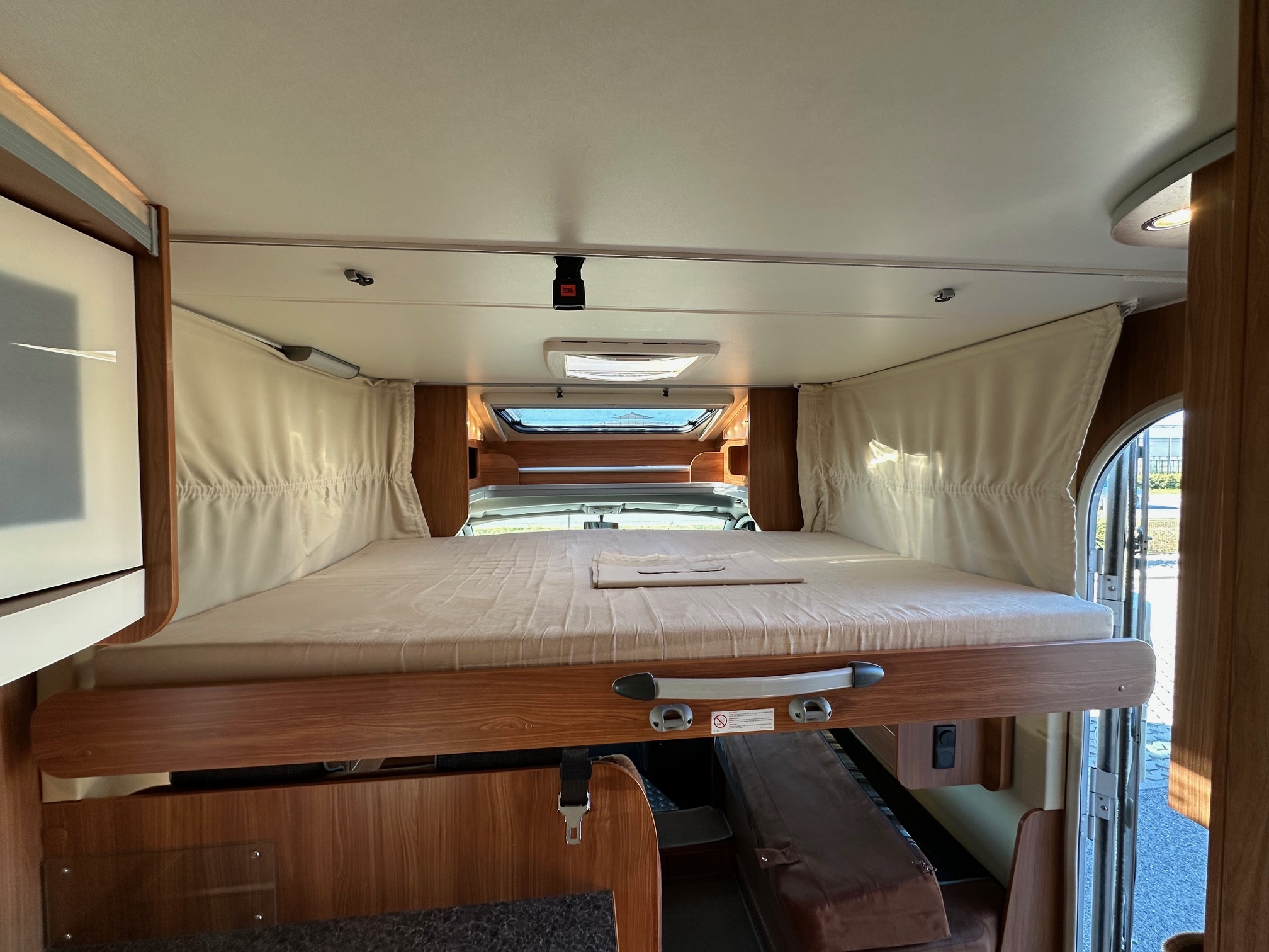 Cerchi in lega da 16”, clima cellula, clima motore automatico, gancio traino, oblò panoramico, oscuranti Remis cabina, pannello solare, portabici, telaio Al-ko, televisione, tendalino, 45.100 km.