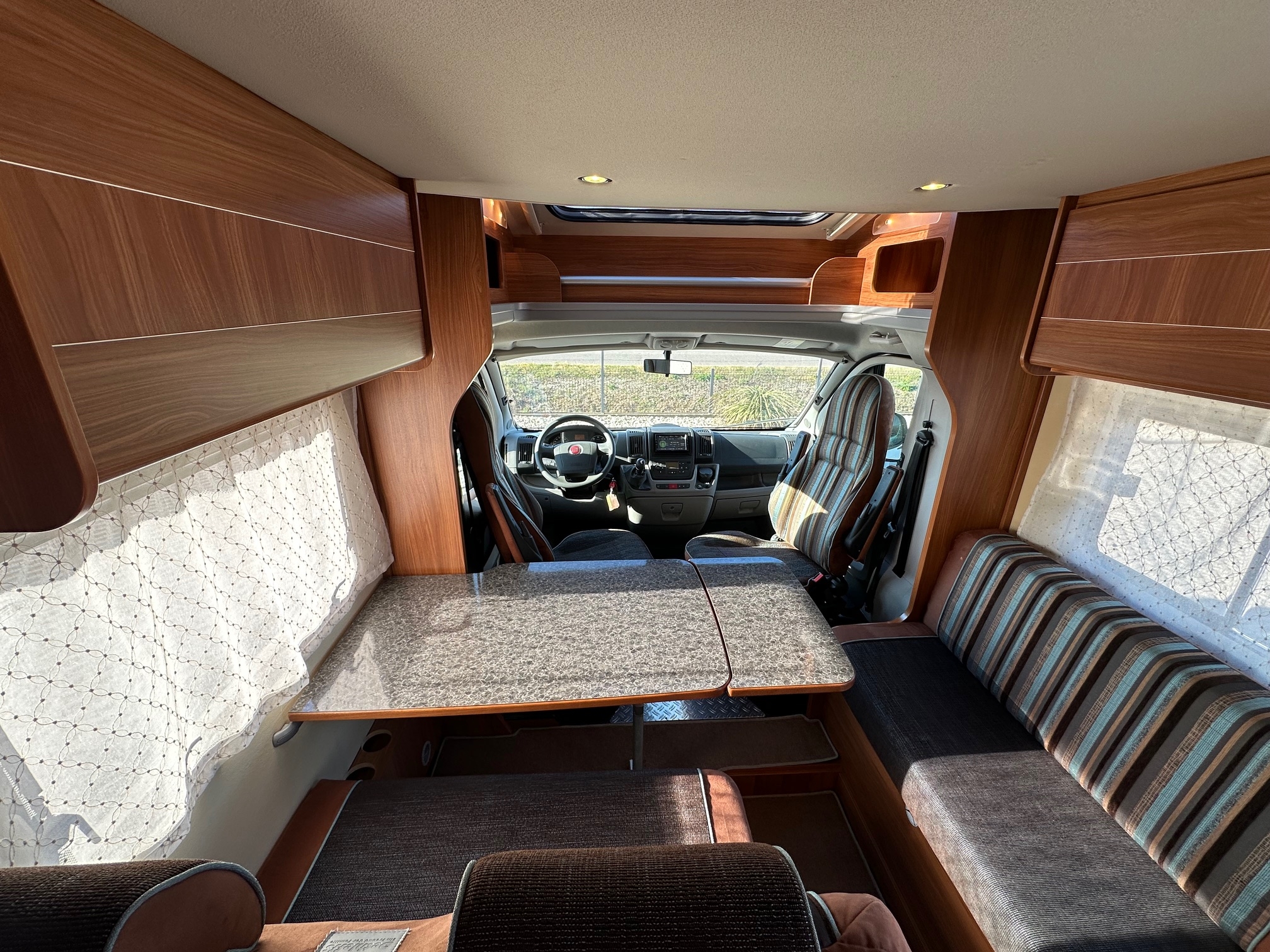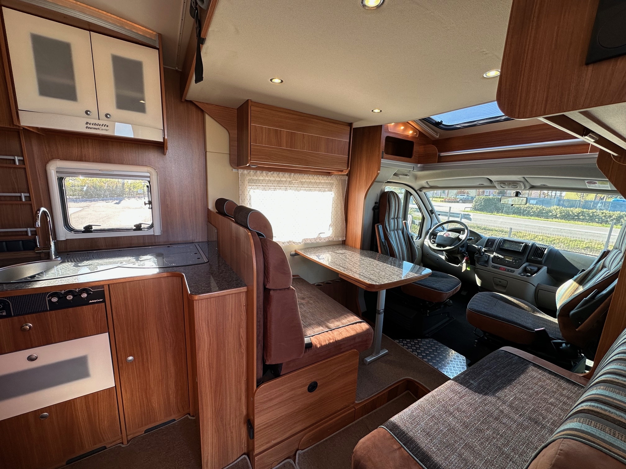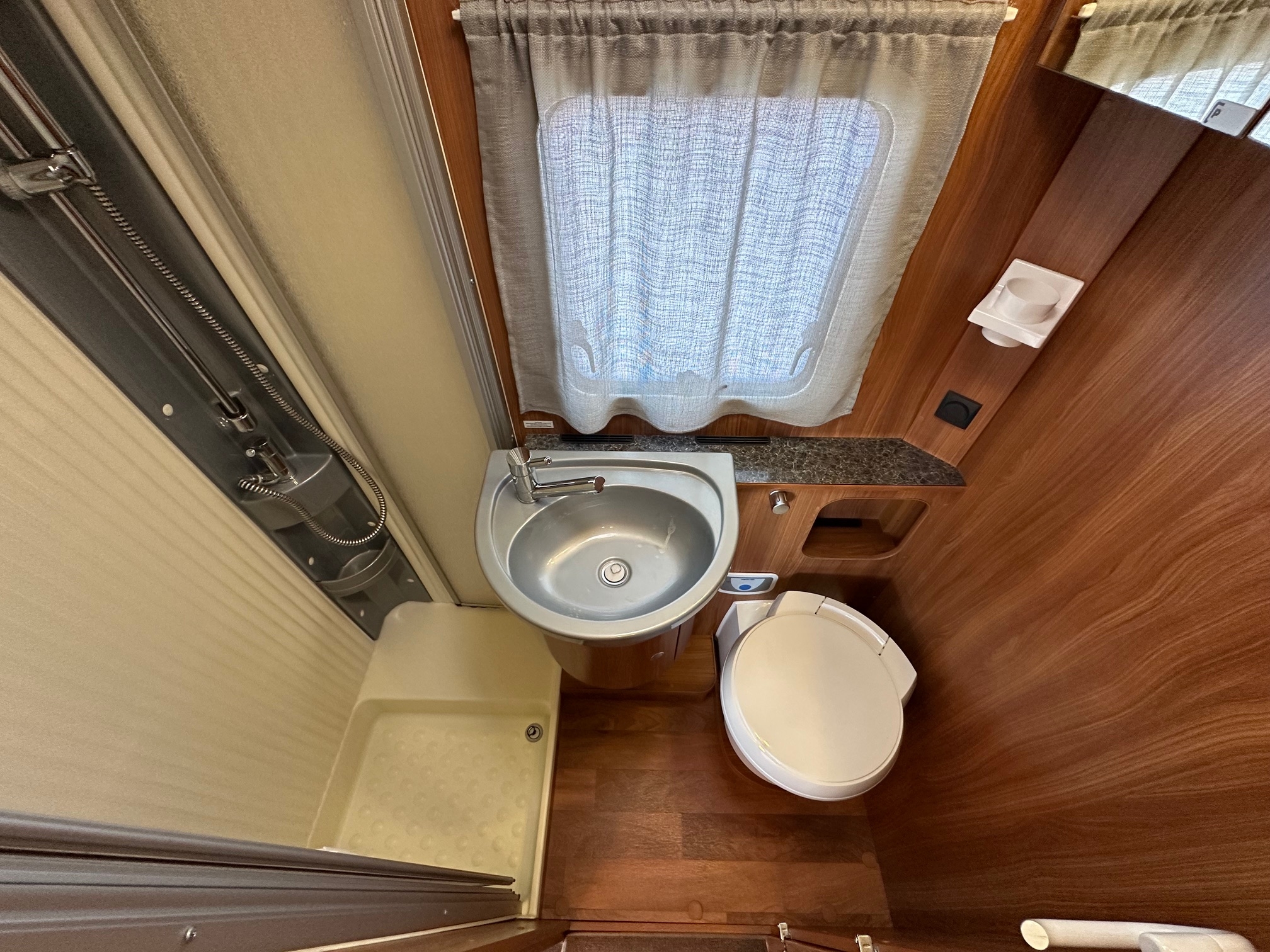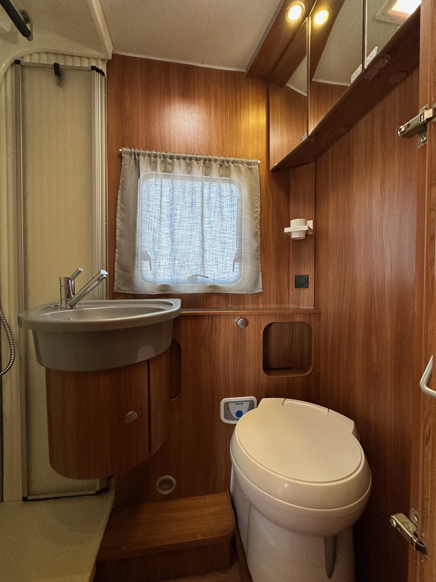 Cerchi in lega da 16”, clima cellula, clima motore automatico, gancio traino, oblò panoramico, oscuranti Remis cabina, pannello solare, portabici, telaio Al-ko, televisione, tendalino, 45.100 km.