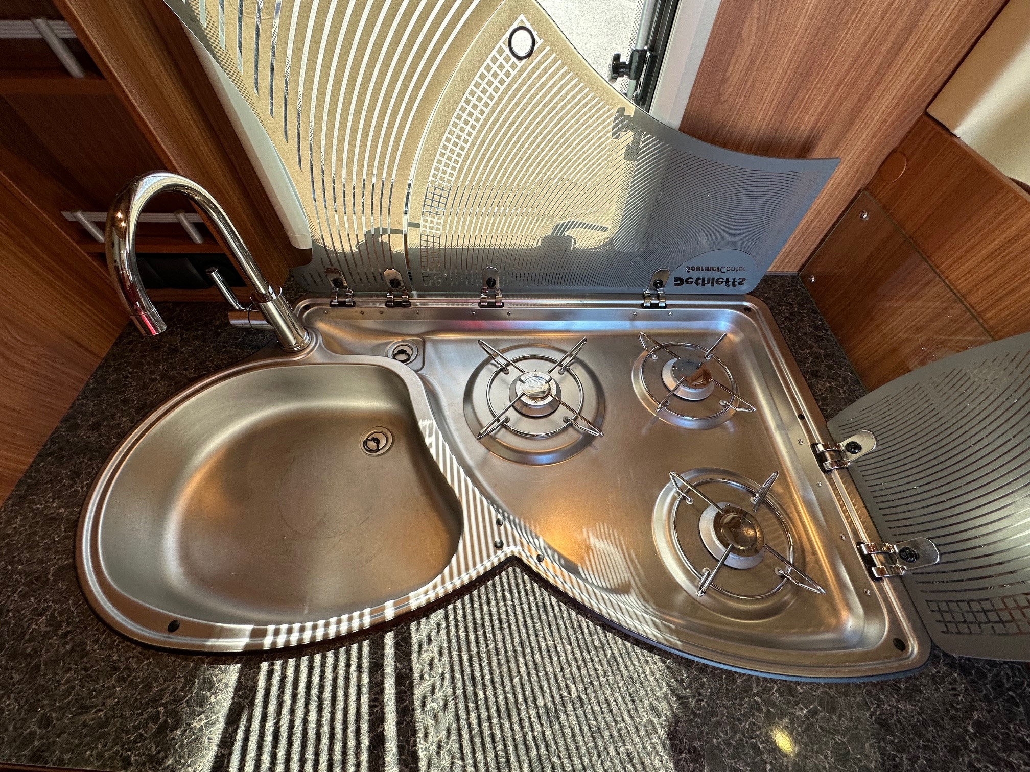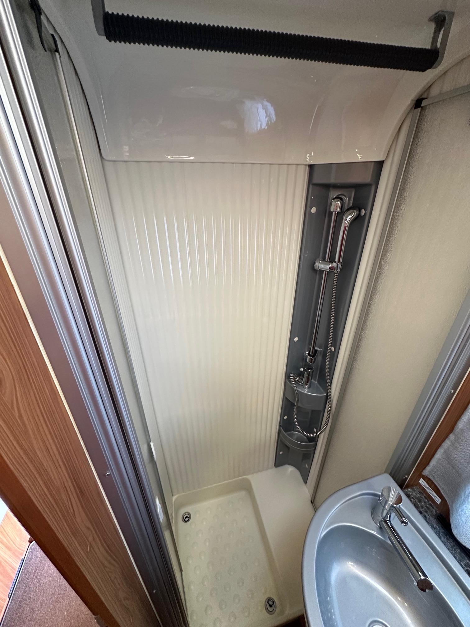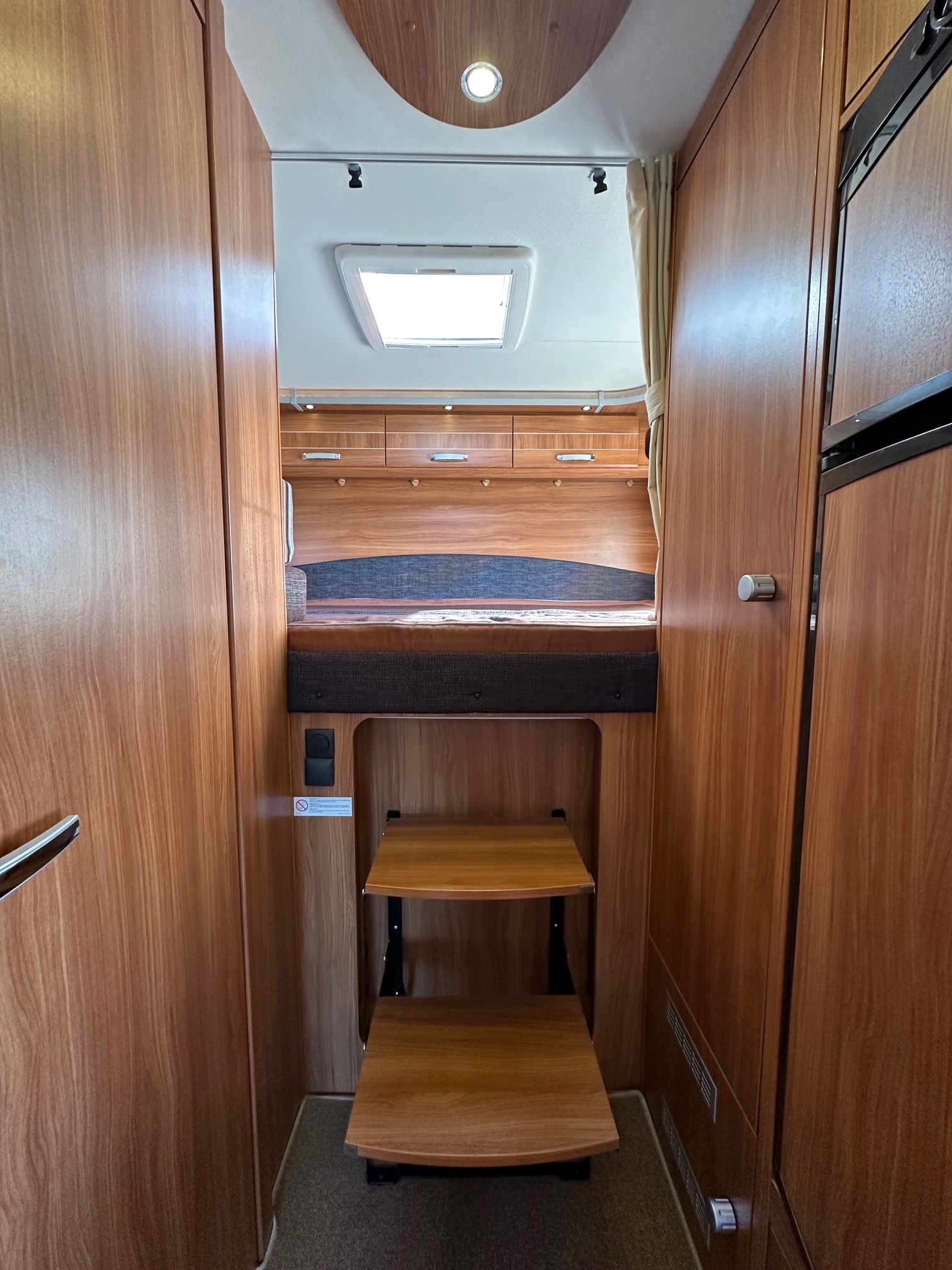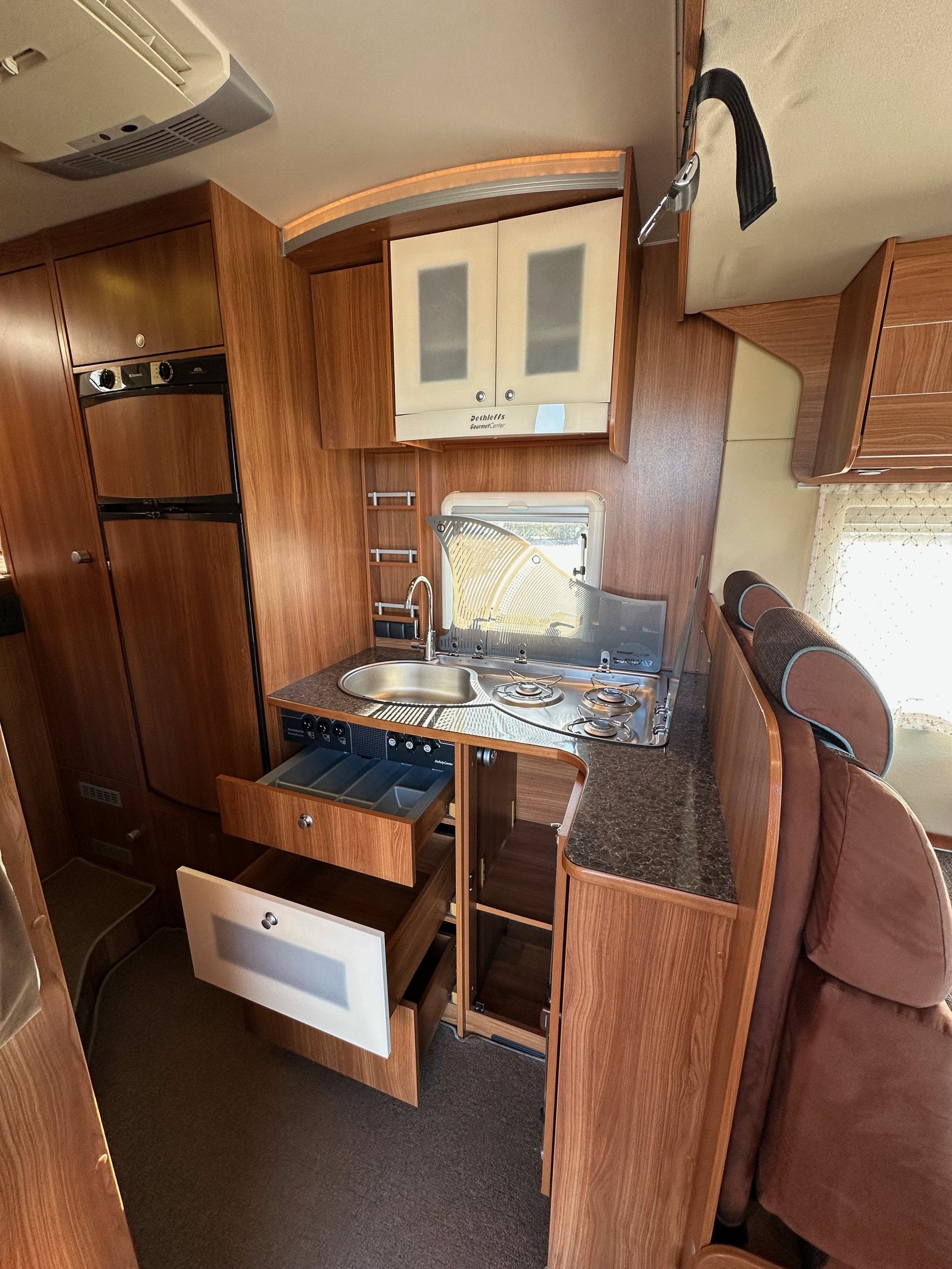 Cerchi in lega da 16”, clima cellula, clima motore automatico, gancio traino, oblò panoramico, oscuranti Remis cabina, pannello solare, portabici, telaio Al-ko, televisione, tendalino, 45.100 km.