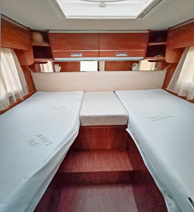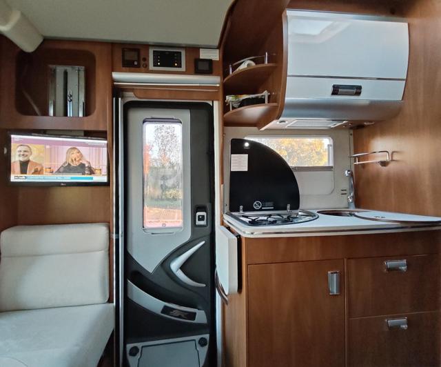 Multi-Media System: Navigatore,retrocamera,autoradio 7? altoparlanti a vibrazione, Letto basculante elettrico sopra il soggiorno, Aria condizionata in cabina, I-NET Truma (Controllo remoto stufa), Antifurto originale Laika, TV LED 19? DVD con decoder integrato, Oblò panoramico sui letti, Finestra nel bagno, Cruise control, Sedili girevoli, Zanzariera porta ingresso, Oscuranti plissettati in cabina, Doppio telecomando chiave?, I-MOX (videosorveglianza Camper), Portamoto interno con rampa di carico moto.