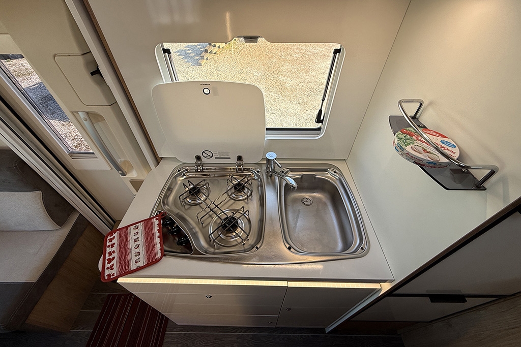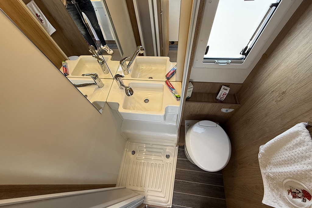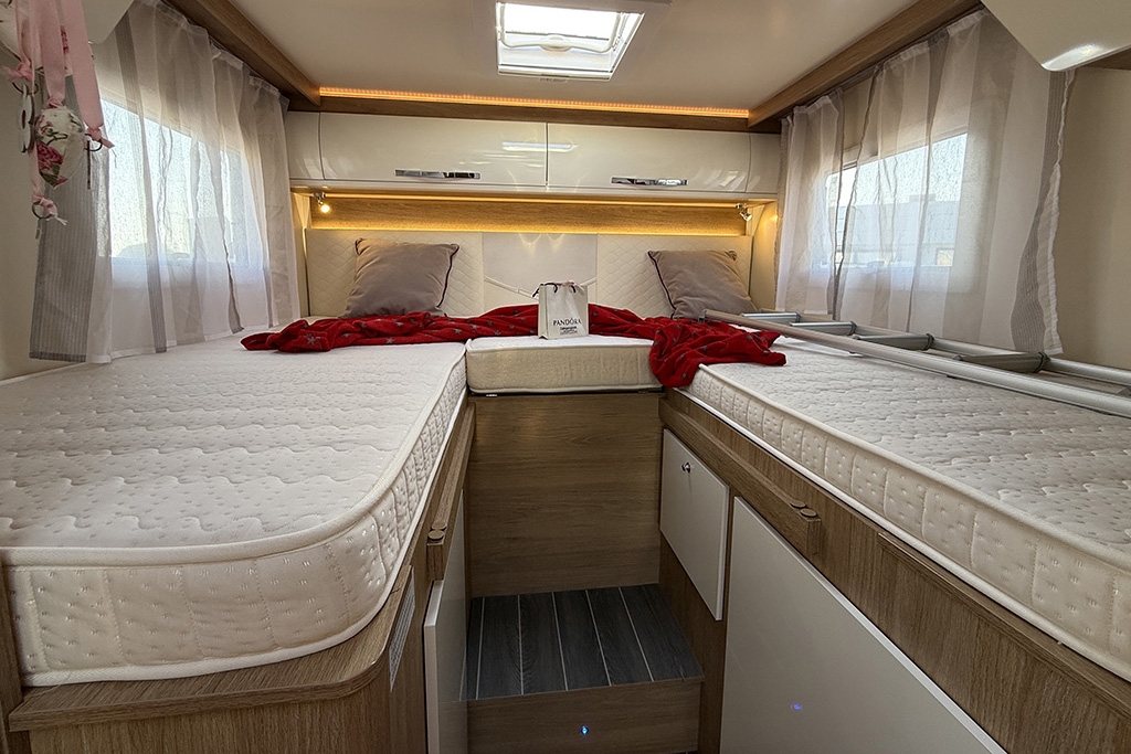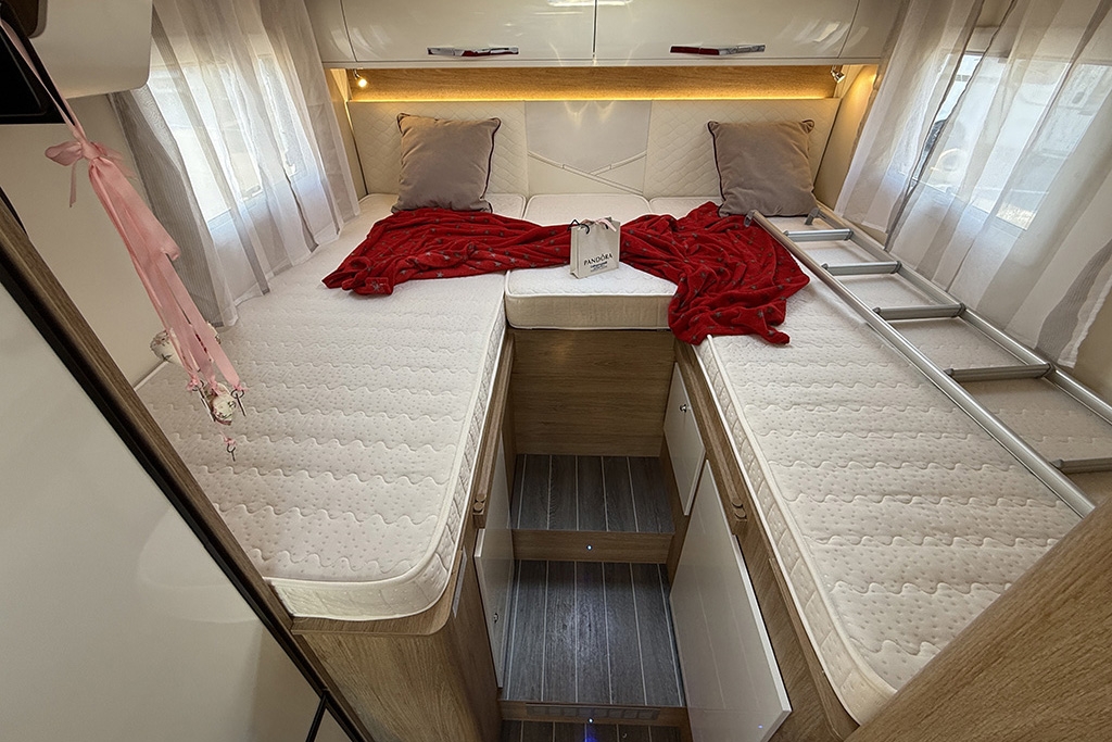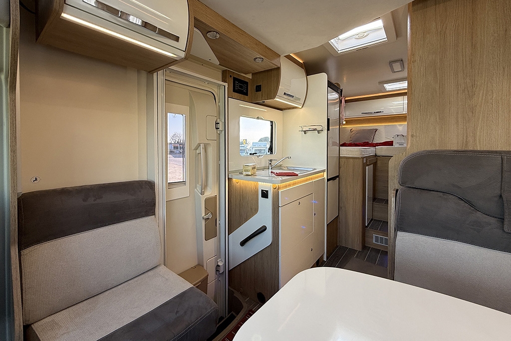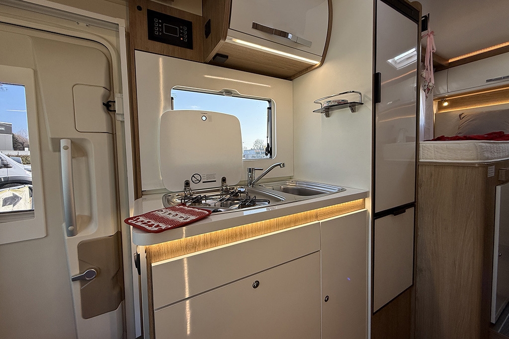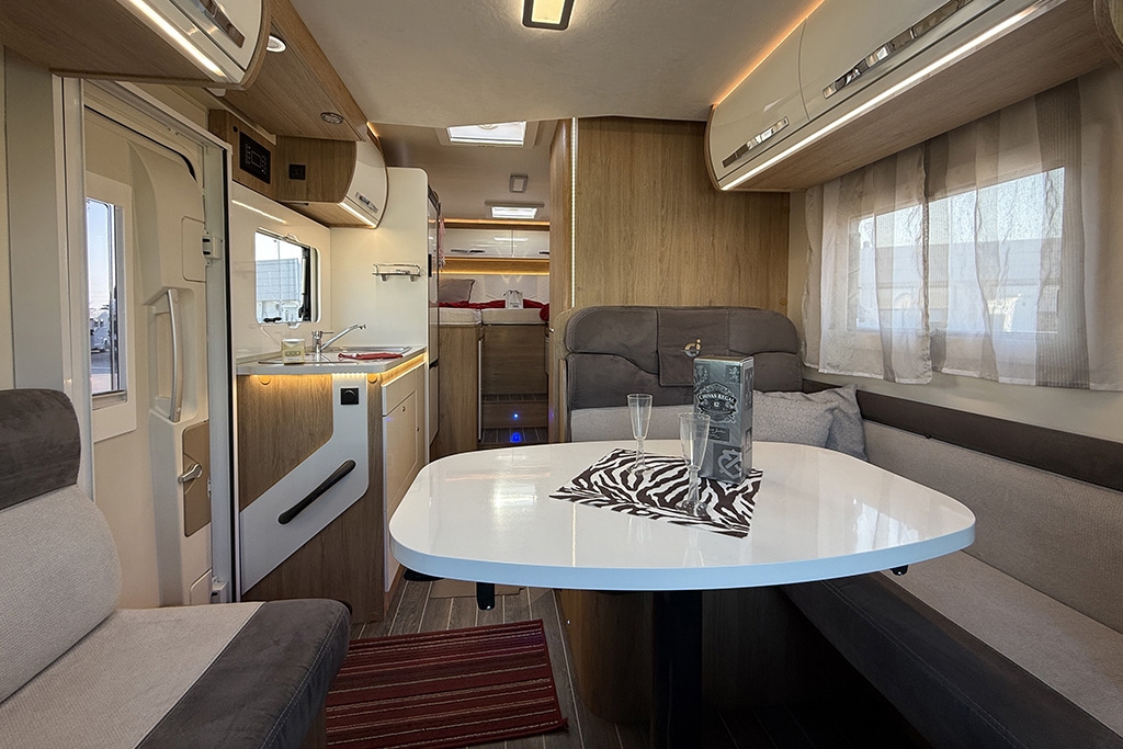 ESP, Traction+, Hill Holder, Hill Descent Control, Climatizzatore in cabina, Cruise Control, Airbag passeggero, Specchietti retrovisori regolabili elettricamente e riscaldabili, Cerchi in lega da 16, Tendalino, Pannello solare, Telecamera retromarcia, Autoradio 2DIN con comandi al volante, Oscuranti plissettati in cabina, Serbatoio di recupero riscaldabile, Porta cellula con finestra, zanzariera e chiusura centralizzata, Luce esterna
