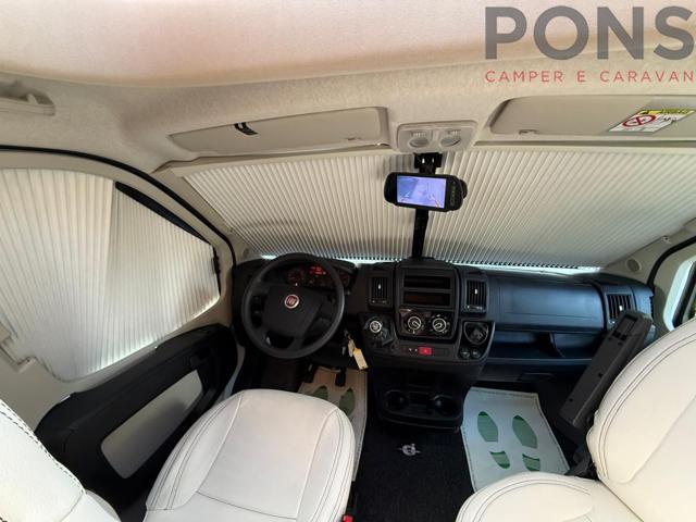 Antenna satellitare - Pannello solare - Veranda - Letto posteriore regolabile in altezza - Predisposizione portabici - Retrocamera - Oscuranti plissettati - Aria condizionata cabina - Porta con zanzariera