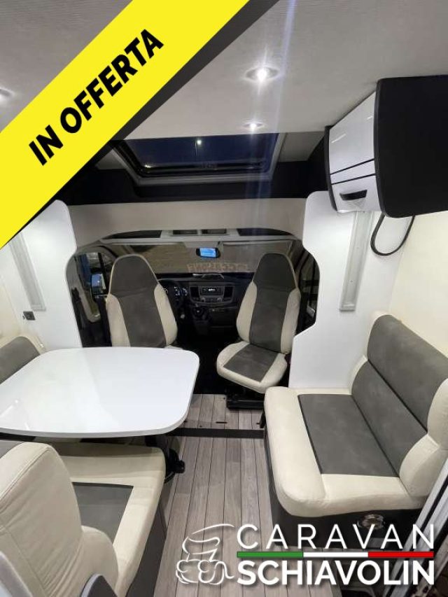 Gancio traino omologato 2000 kg, Veranda, Climatizzatore a tetto, Climatizzatore in cabina guida, Inverter da 2000W, Antenna Tv digitale terrestre, 2 Tv con piastre orientabili, Oscuranti plissettati in cabina, Presa esterna del gas, Presa esterna multifunzione, 5° posto omologato, 5° posto letto in dinette, Presa acqua con doccino nel gavone, Cruise control, Sistema di mantenimento della corsia, Radio con comandi al volante, Retrocamera con monitor, Start and Stop, Volante e pomello del cambio in pelle, Fari Drl Led, Fendinebbia, Oblò Skyview sopra cabina guida, Letto posteriore regolabile elettricamente, Letto basculante anteriore sopra dinette, Luce esterna a led, Zanzariera a rullo per porta cellula. Prezzo con permuta ? 63.900,00 CAMPER SEMINTEGRALE CON LETTO NAUTICO, BAGNO E DOCCIA SEPARATI, LETTO BASCULANTE ANTERIORE, RECENTISSIMO E BEN ACCESSORIATO. ,.