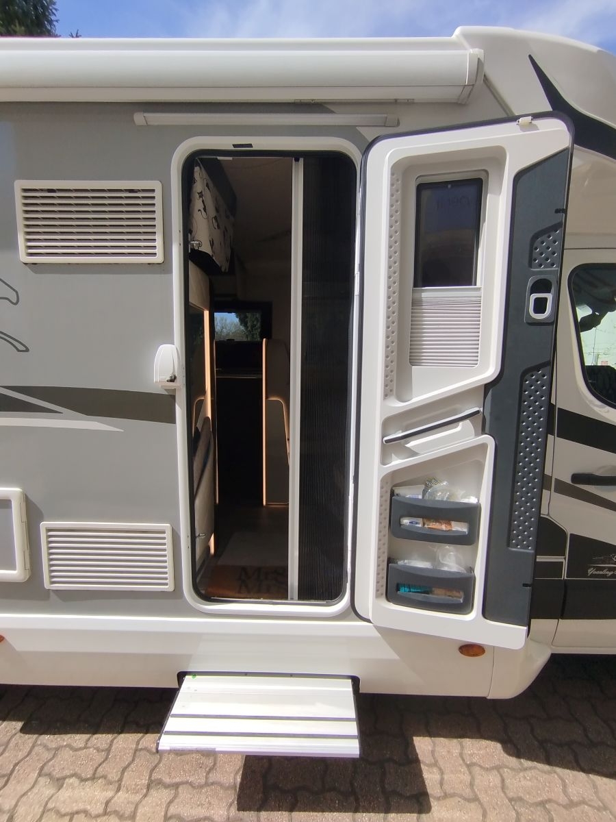Accessori; turbovent, pannello solare, veranda, maxi oblò, supporto per tv, gradino elettrico, sospensioni ad aria, antifurto, rilevatore fughe gas , autoradio, porta XL a due punti di chiusura con finestra e chiusura centralizzata.