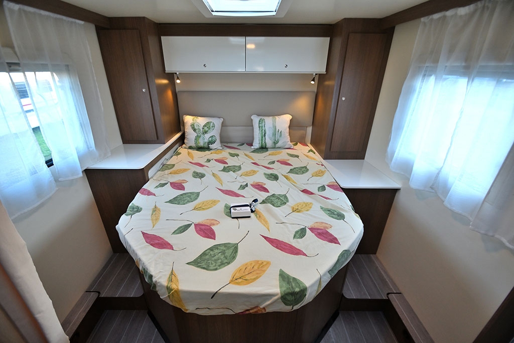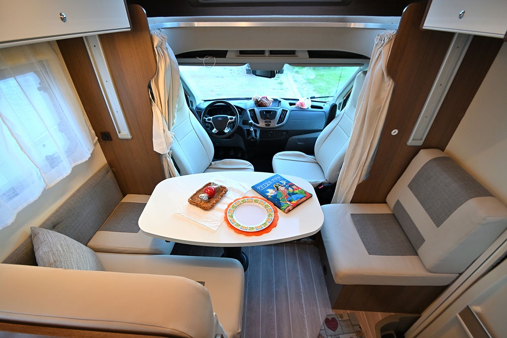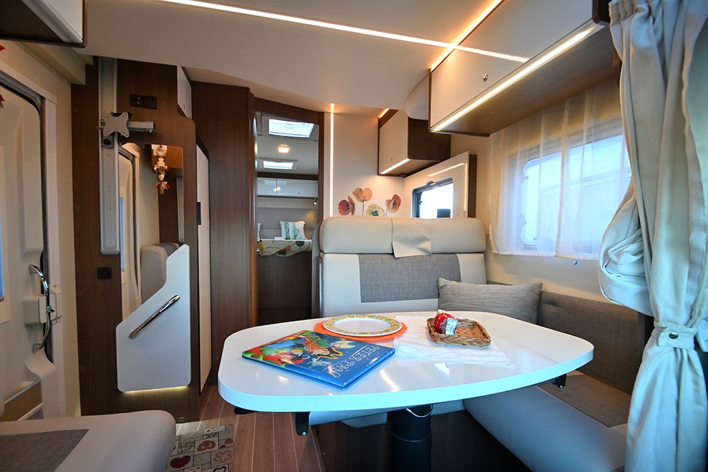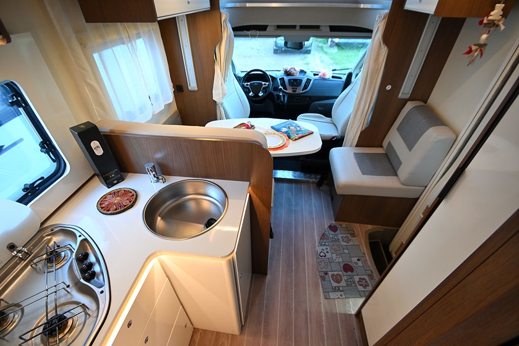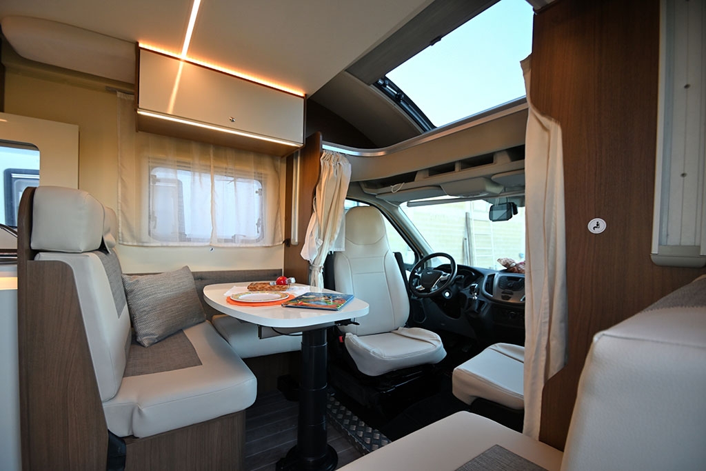 Climatizzatore in cabina, Cruise Control, Airbag passeggero, Specchietti retrovisori regolabili elettricamente e riscaldabili, Autoradio Ford con Bluetooth e comandi al volante, Tendalino, Antenna satellitare, Pannello solare, Telecamera retromarcia, Letto posteriore variabile in altezza, Porta cellula con finestra e zanzariera, Luce esterna