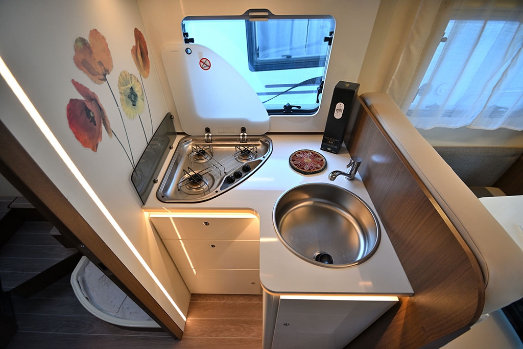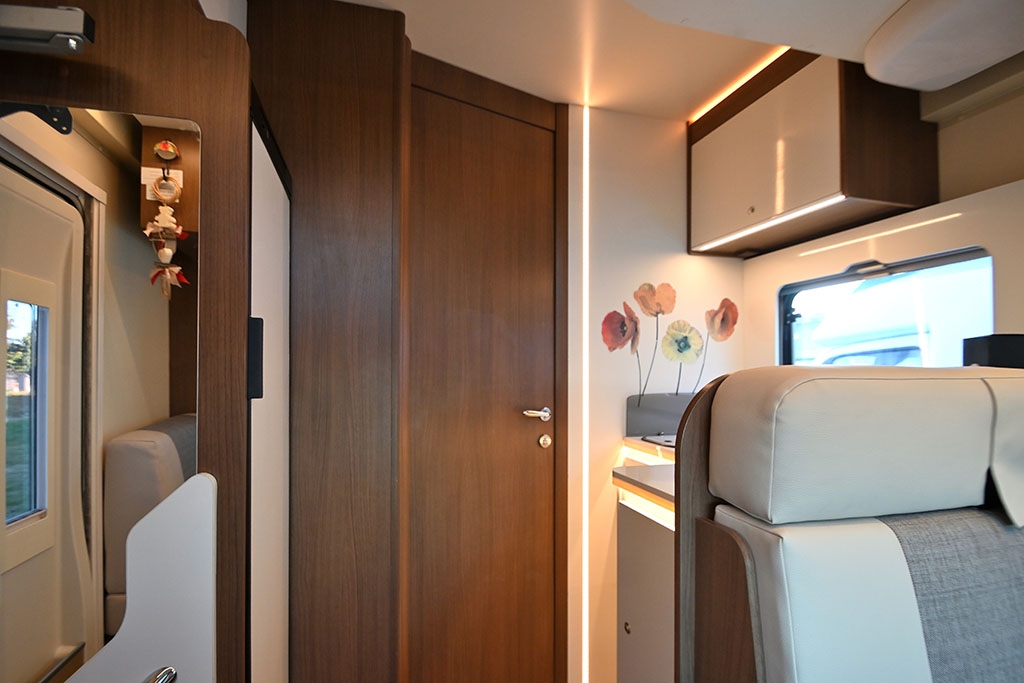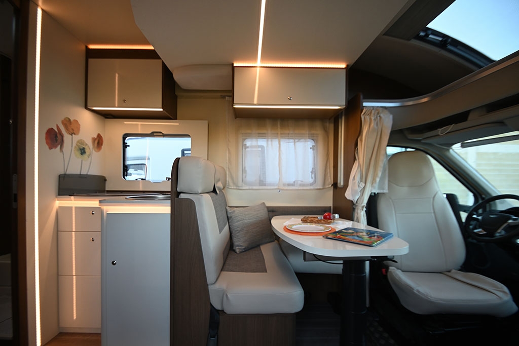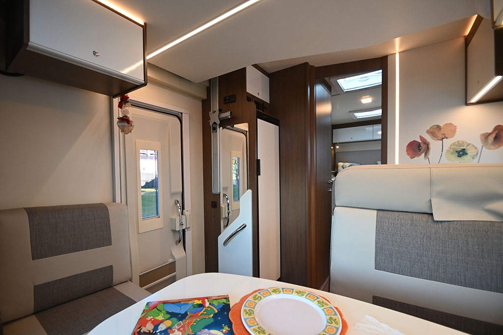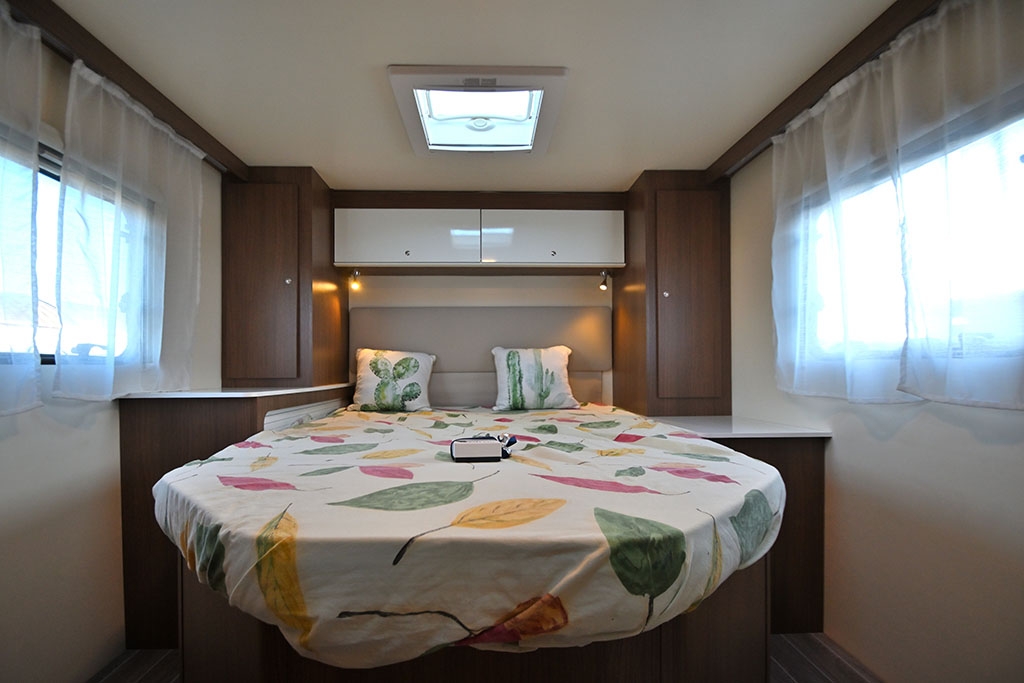 Climatizzatore in cabina, Cruise Control, Airbag passeggero, Specchietti retrovisori regolabili elettricamente e riscaldabili, Autoradio Ford con Bluetooth e comandi al volante, Tendalino, Antenna satellitare, Pannello solare, Telecamera retromarcia, Letto posteriore variabile in altezza, Porta cellula con finestra e zanzariera, Luce esterna