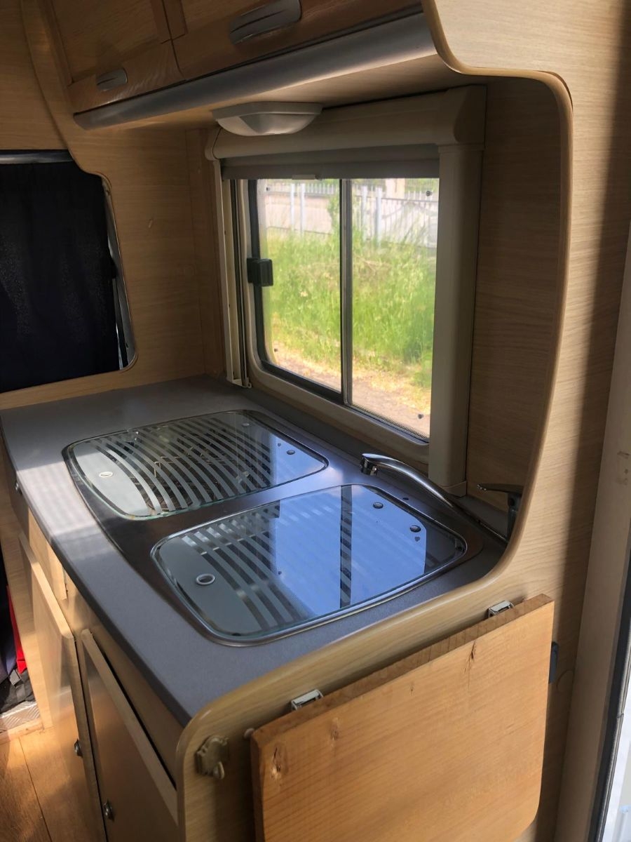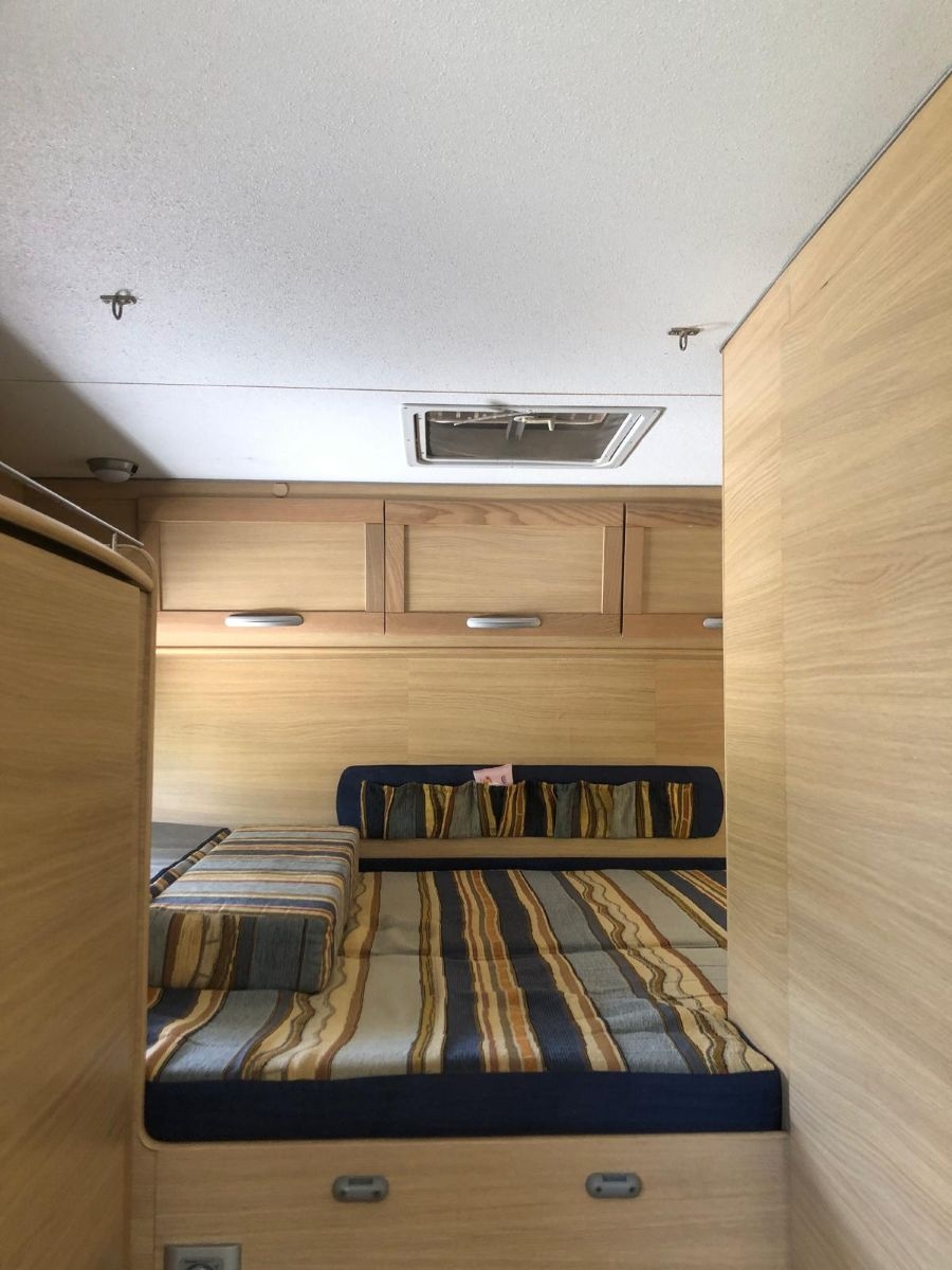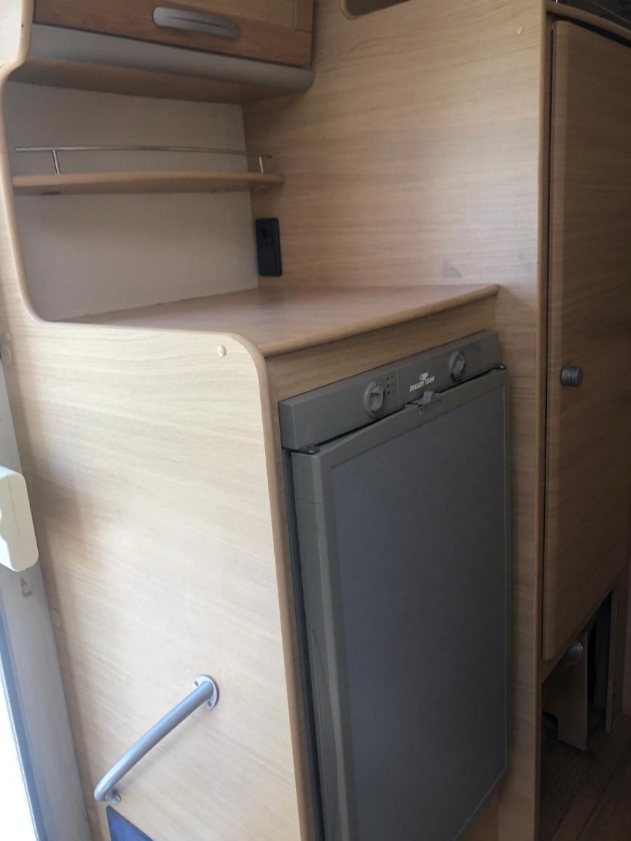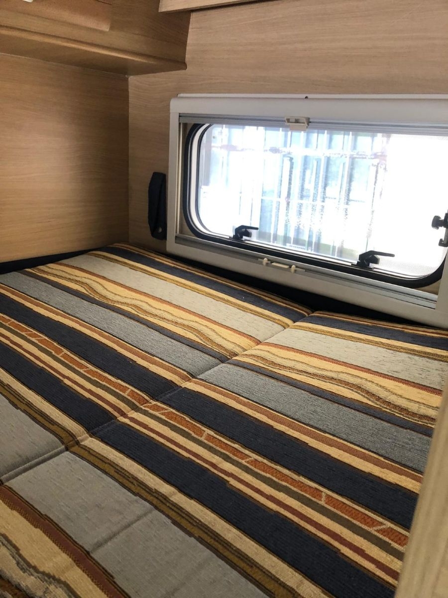 Semintegrale con ampio garage con una buona abitabilità interna, omologato 4 posti letto/viaggio, dinette a 4 posti frontali trasformabile in letto matrimoniale, letto matrimoniale su garage. Bagno con doccia separata, riscaldamento a gas Truma Combi, cucina a tre fuochi e frigorifero da 110 litri.