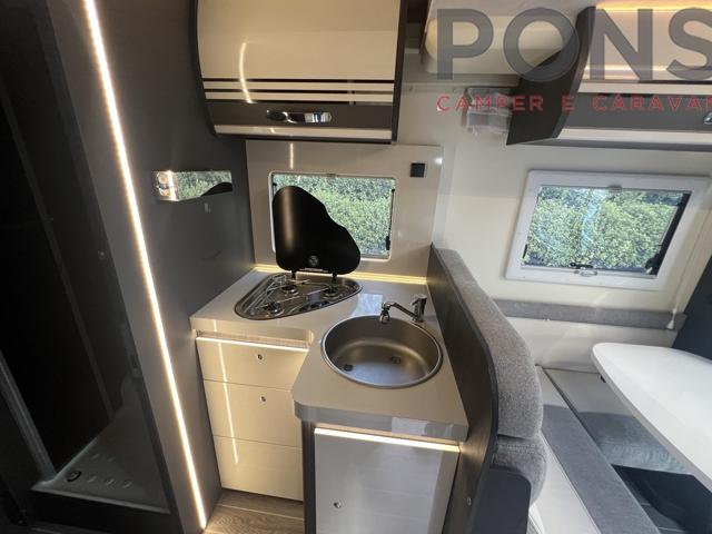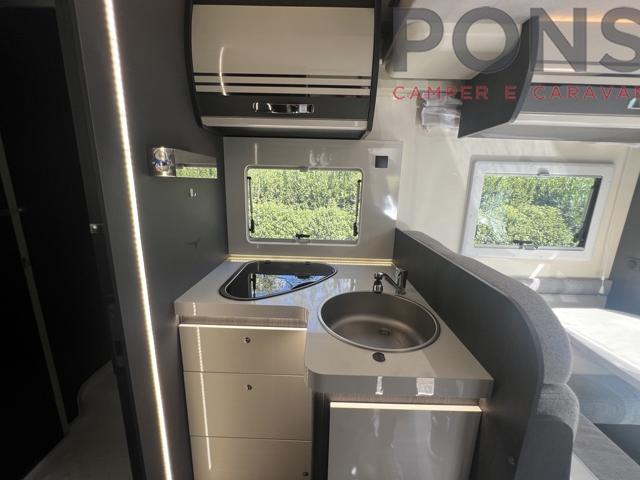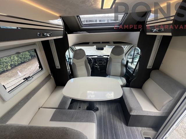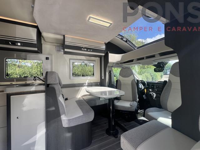 Nella sua lunghezza di 7,45mt questo bellissimo veicolo offre una luminosa zona giorno grazie al maxi oblò panoramico, dinette dotata di un tavolo con piano traslabile e sedili cabina girevoli.