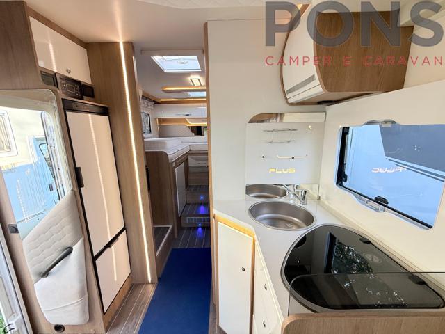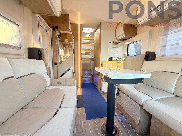 Lungo 7,45 mt con letti gemelli in coda e letto basculante sopra la dinette, cucina con piano cottura a tre fuochi, zona giorno ampia e luminosa con tavolo a libro e dinette face to face. Bagno con doccia separata e garage posteriore spazioso.