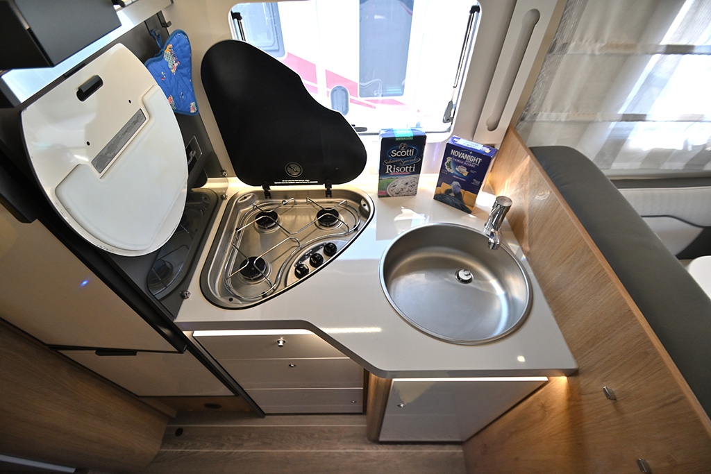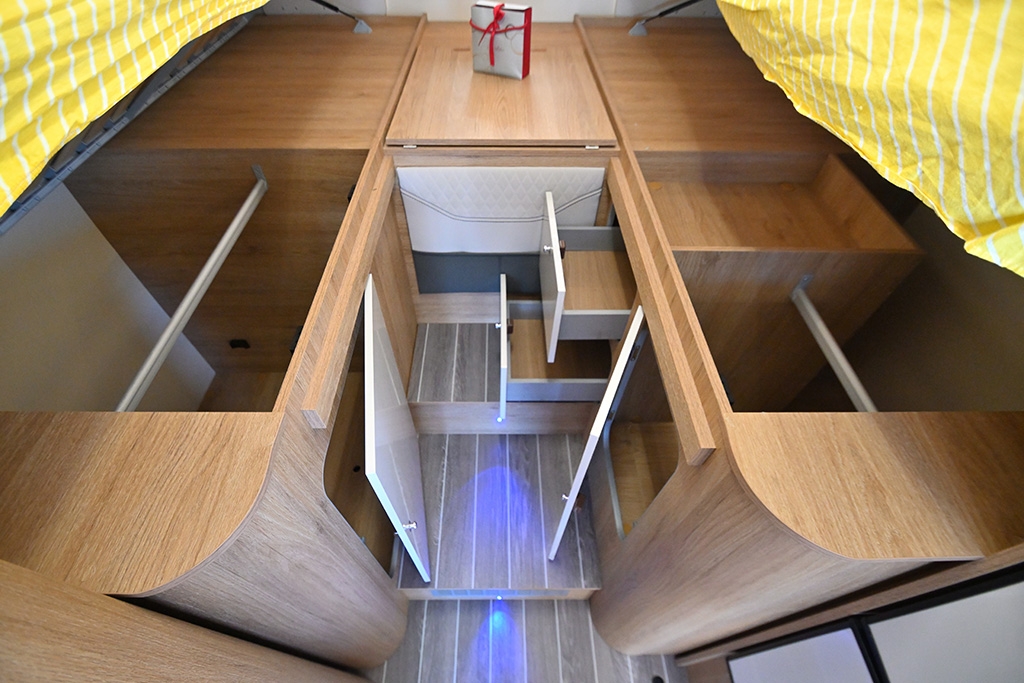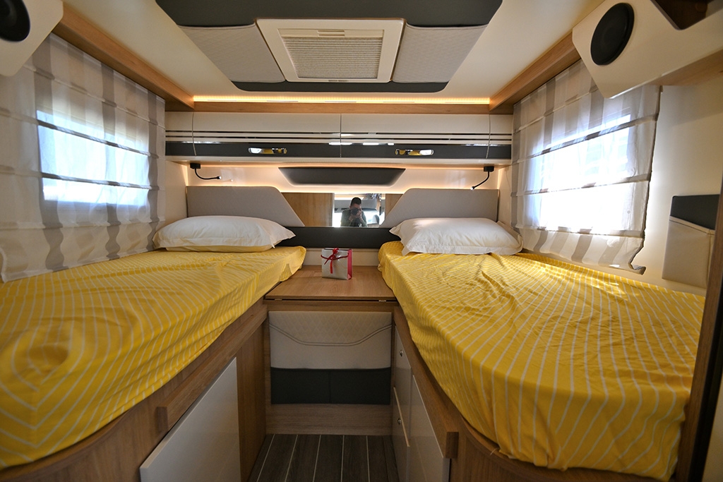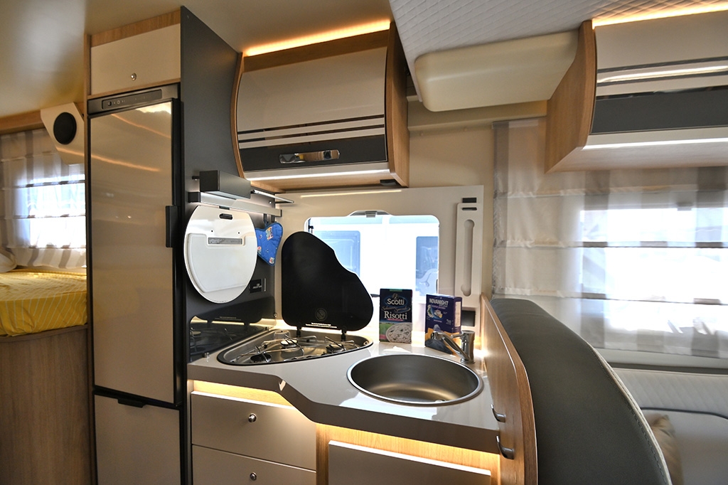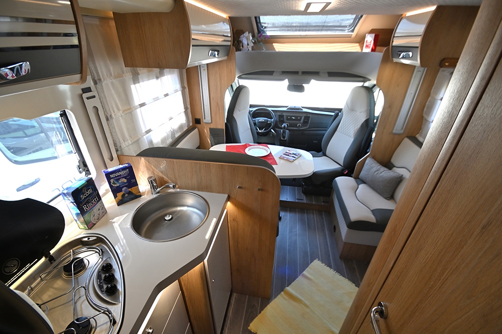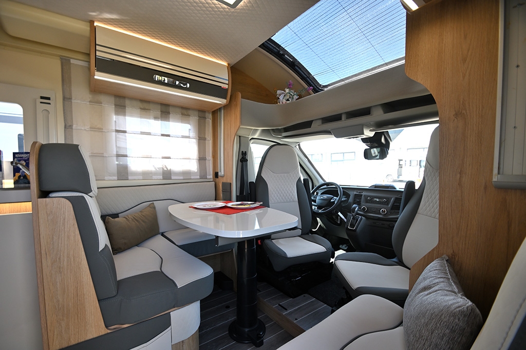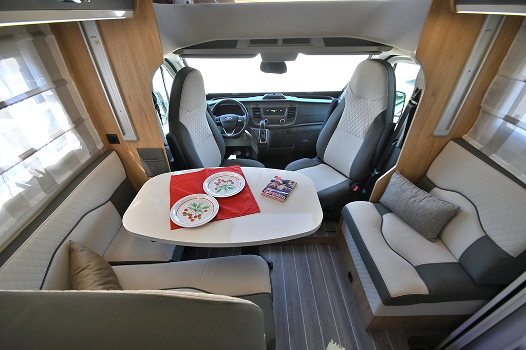 Cambio automatico, ESP, Hill Holder, Climatizzatore in cabina, Cruise Control, Airbag passeggero, Specchietti retrovisori regolabili elettricamente e riscaldabili, Fendinebbia, Accensione automatica fari, Autoradio Ford con Bluetooth e comandi al volante, Telecamera retromarcia, Tendalino, Pannello solare, Antenna TV terrestre, Oscuranti plissettati in cabina, Cabina di guida color Silver, Porta cellula con finestra, zanzariera e chiusura centralizzata, Luce esterna