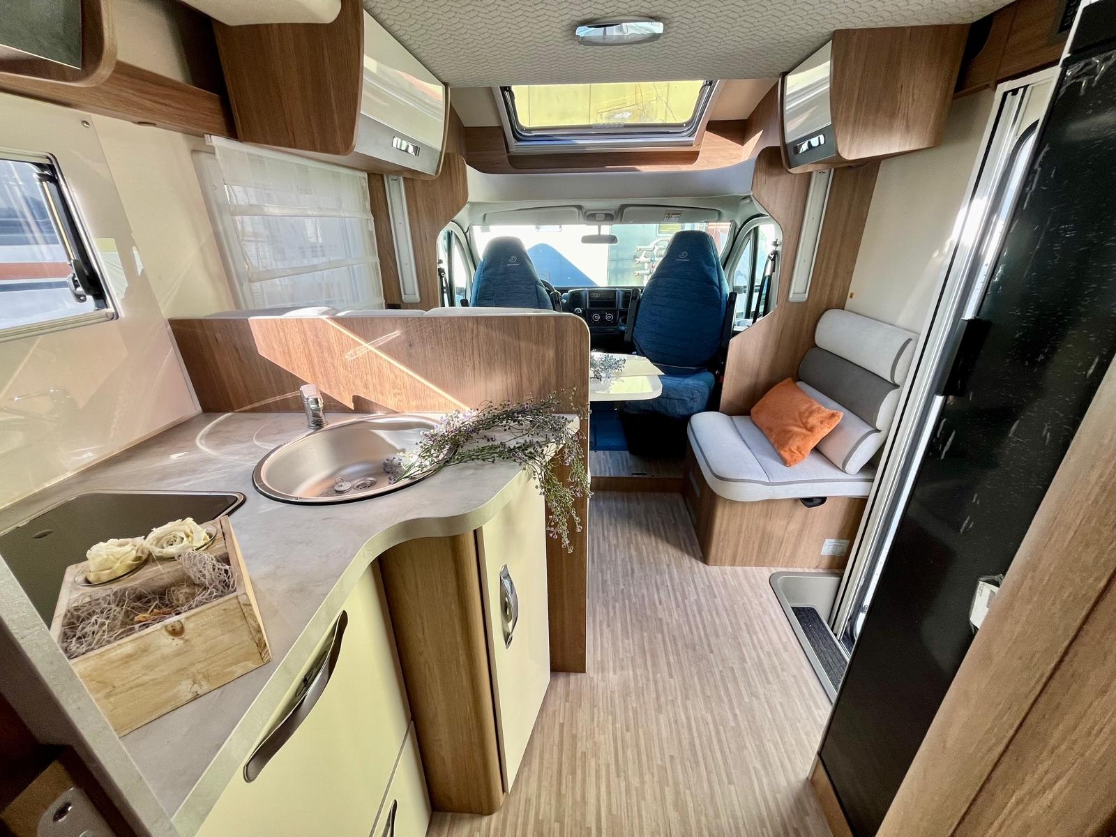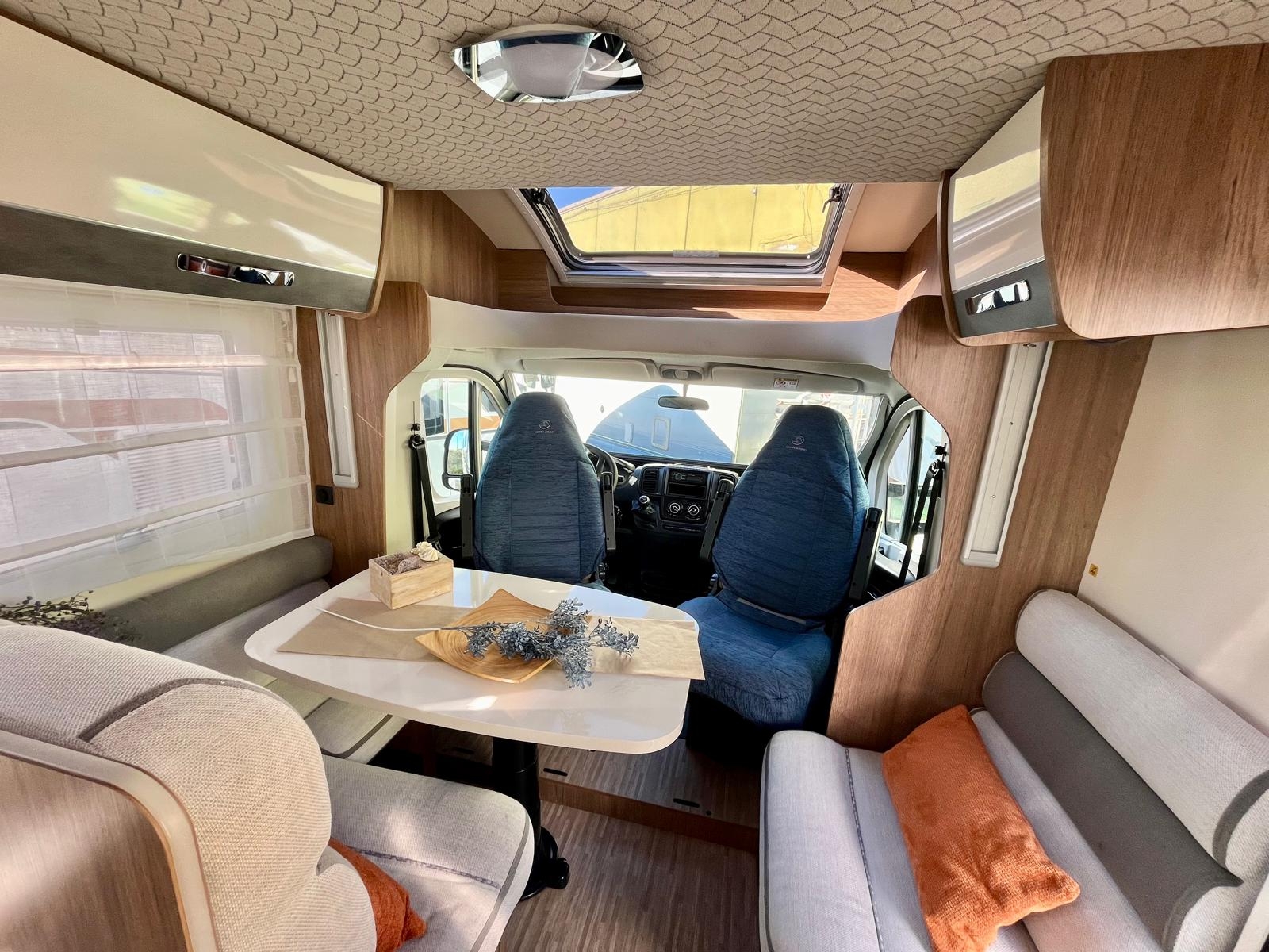 Il Semintegrale Elnagh Baron 579 è un camper di generose dimensioni, spazioso e ben equipaggiato, ideale per famiglie o gruppi di amici che desiderano viaggiare con comfort e stile.Motore: Fiat Ducato 2.2 con 140 CV.Lunghezza: 7,45 metriOmologazione: Adatto per 5 persone.Posti letto: 5Dotazioni:Pannello solare: Per una maggiore efficienza energetica.Retrocamera: Facilita le manovre di parcheggio.Oscurante plissettato: Per privacy e controllo della luce.Fari fendinebbia: Migliorano la visibilità in condizioni di nebbia.Traction+: Per una migliore trazione su superfici scivolose.Climatizzazione: Clima cabina per mantenere un ambiente confortevole durante i viaggi.Cerchi in lega da 16’’ con sospensioni in composito: Per una guida più confortevole.Griglia/skid plate/fari neri: Aggiungono un tocco di stile al design esterno.Comandi al volante: Per un facile accesso alle funzioni del veicolo.Prezzo : da € 63.500 a € 61.000,00