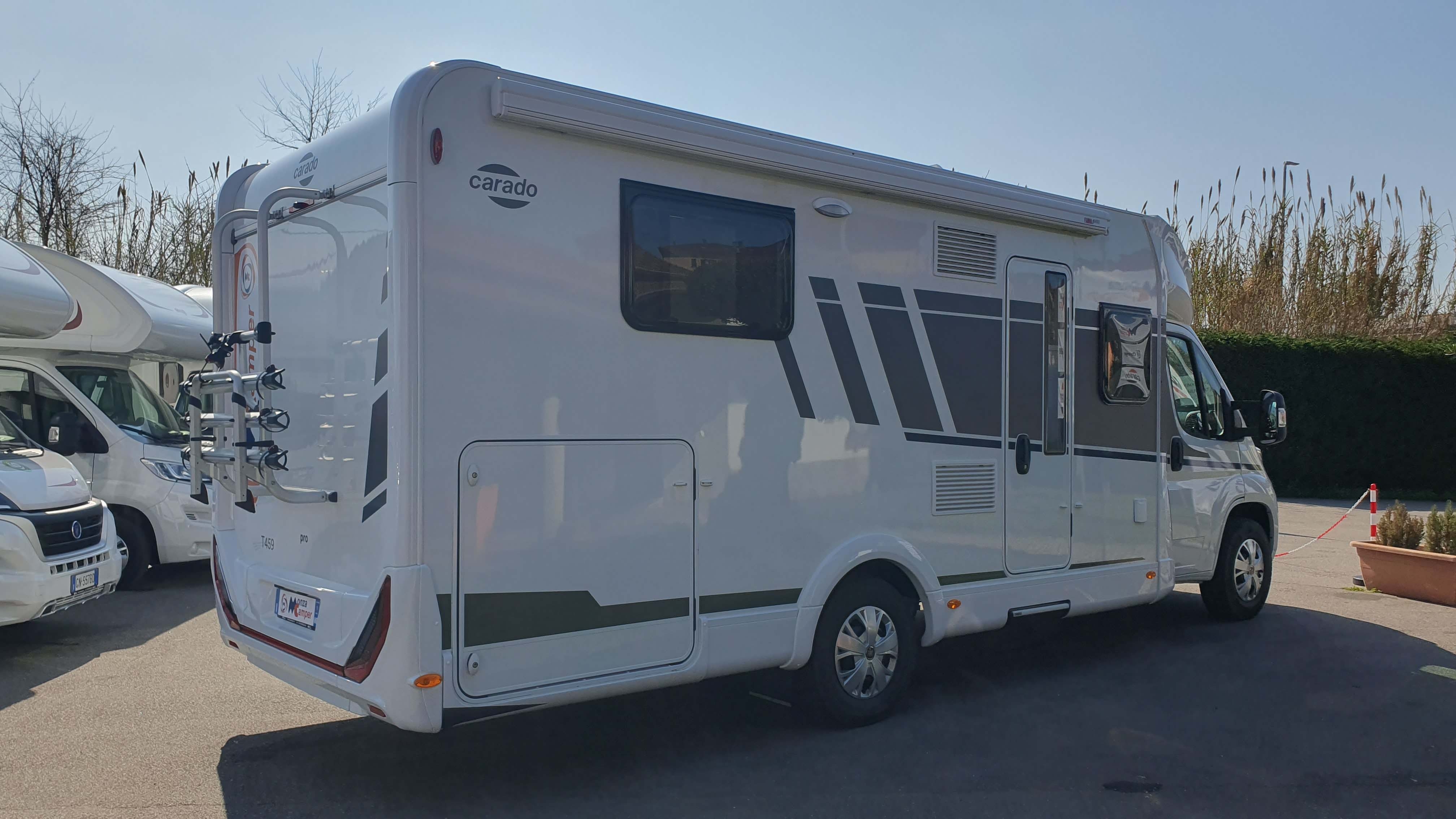 Il Carado T459 Pro è un semintegrale su base Fiat Ducato 140 CV con cambio manuale, ideale per chi cerca un veicolo versatile e confortevole per le proprie avventure. Lungo 7,39 metri, offre 4 posti omologati e 4 posti letto, simile al T447 per disposizione e lunghezza. La principale differenza è nel letto nautico posteriore, che offre una maggiore comodità e accesso rispetto ai letti gemelli. Il riscaldamento e l'acqua calda sono gestiti dal sistema Truma Combi a gas, garantendo un ambiente accogliente in ogni stagione e durante qualsiasi viaggio.