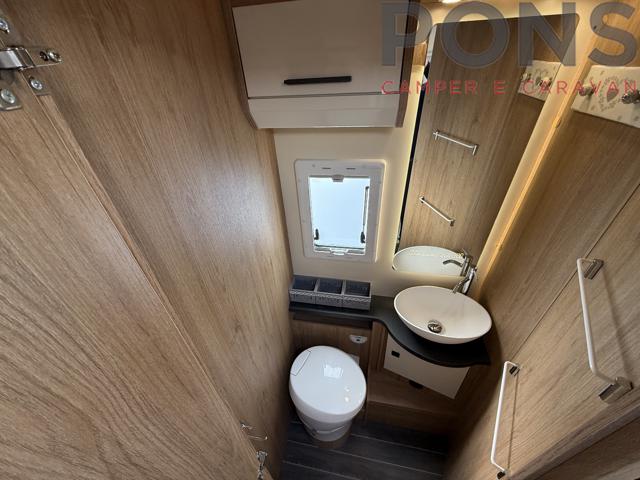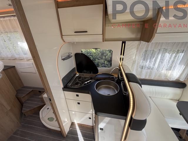 Il camper si presenta in ottime condizioni esterne ed interne, il living nella parte anteriore è grande e confortevole grazie anche all'utilizzo dei sedili cabina girevoli. Nella parte centrale del veicolo abbiamo la cucina con lavello, piano cottura a tre fuochi e piano d'appoggio.