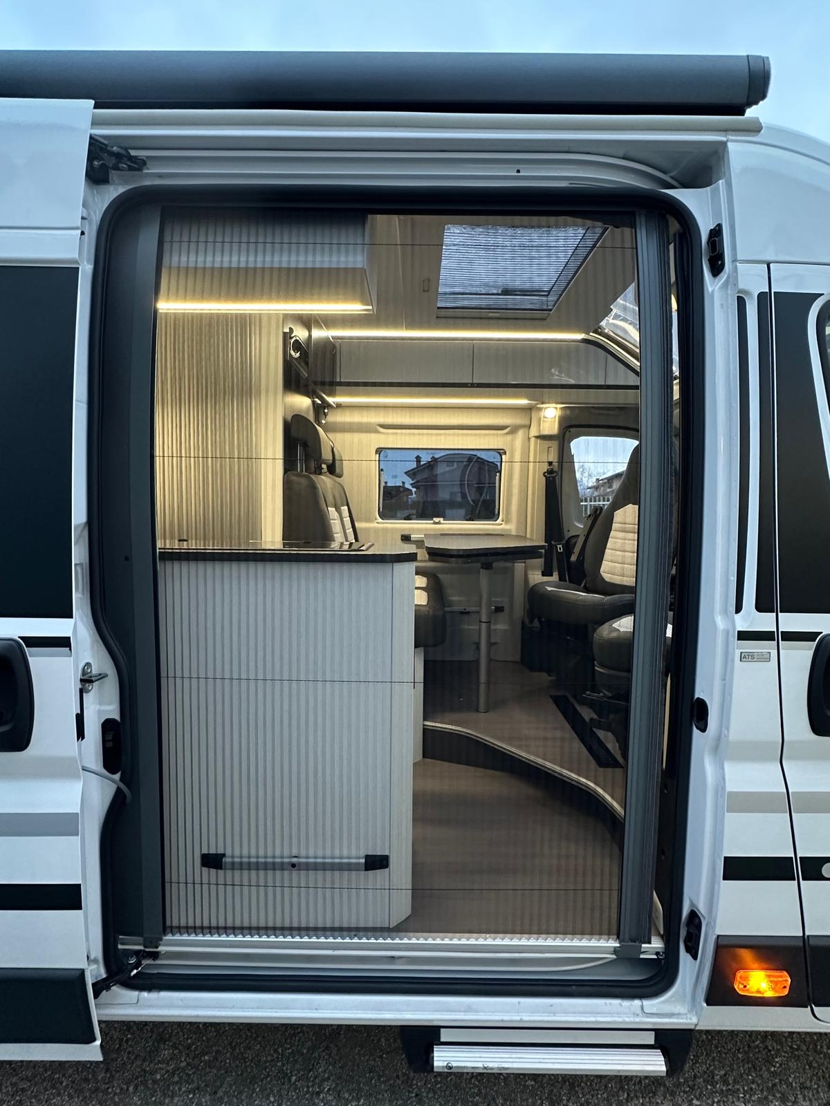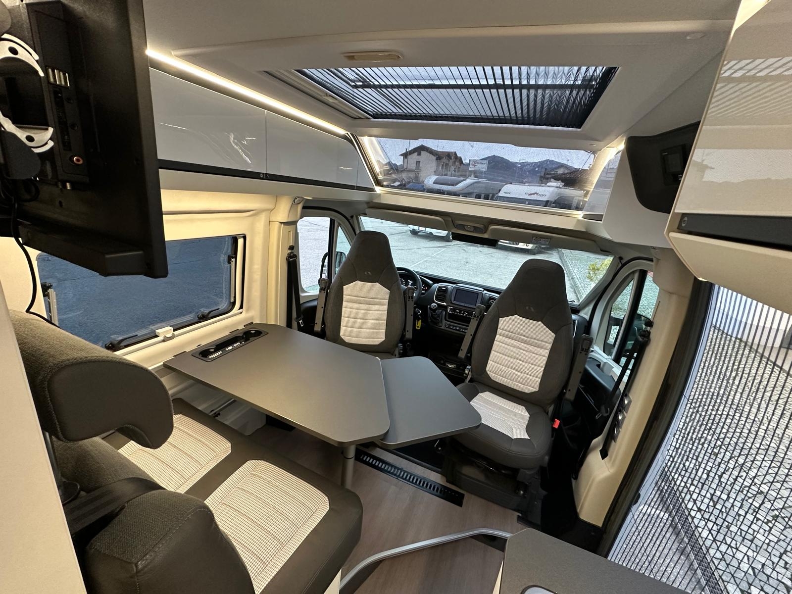 Motorizzazione 160 cv, Cerchi in lega 16, Clima cabina AUTOMATICO, Radiodoppiodin + Retrocamera, Veranda, Luce esterna, Skyview panoramico, Zanzariera portellone, Frigo 150 litri a compressore, gradino elettrico, Sospensioni Pneumatiche, Scuri Remis,