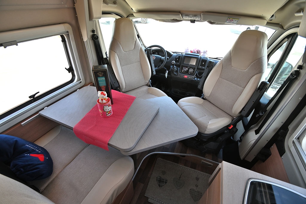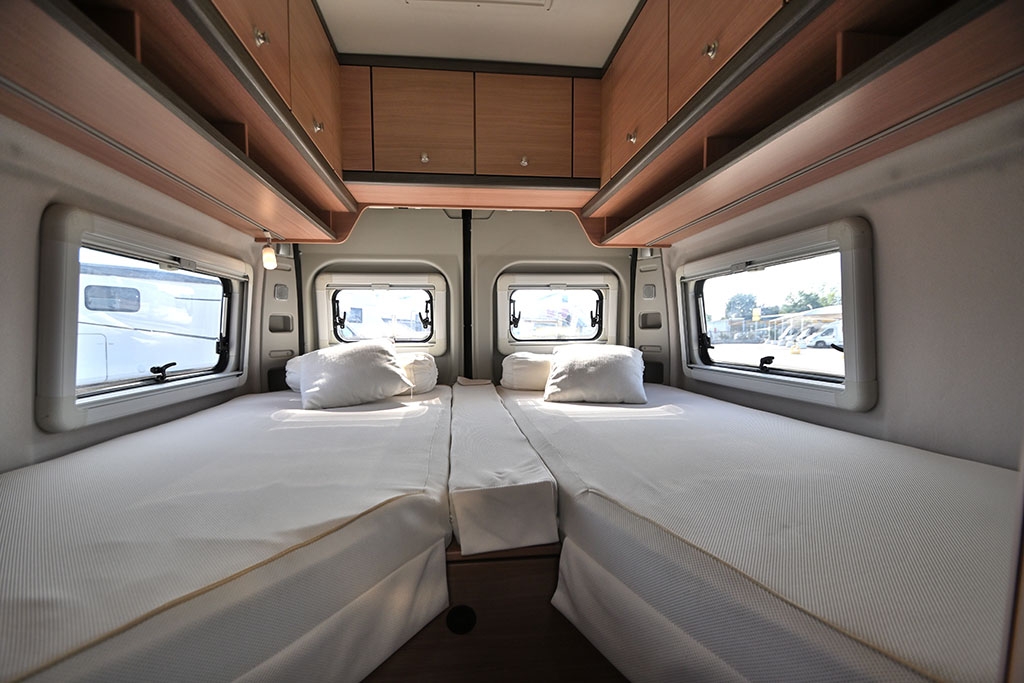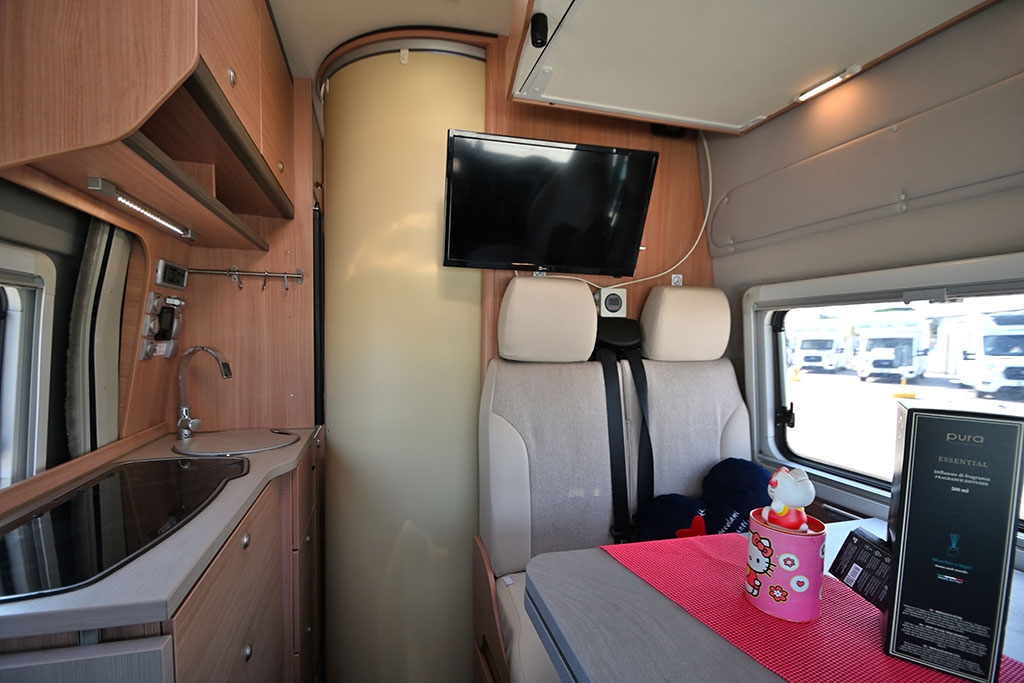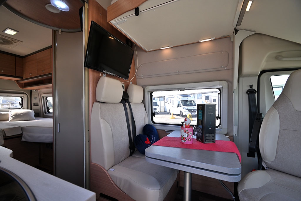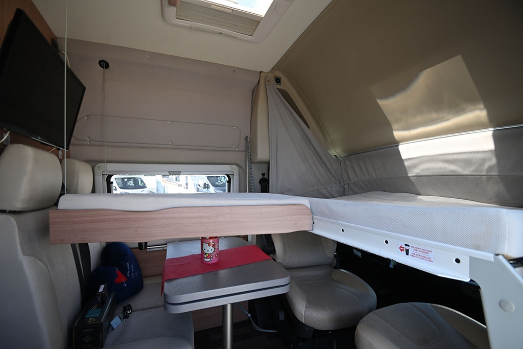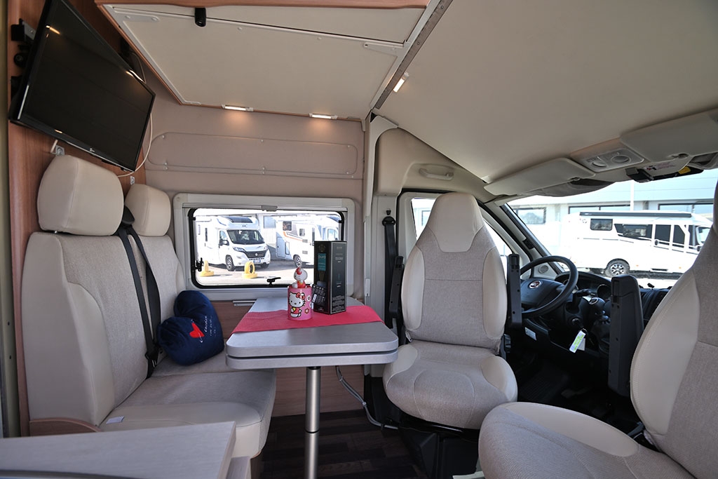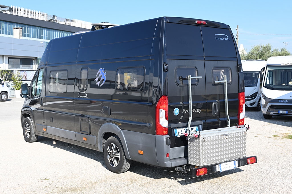 ESP, Traction+, Hill Holder, Hill Descent Control, Climatizzatore in cabina, Cruise Control, Airbag passeggero, Specchietti retrovisori elettrici e riscaldabili, Cerchi in lega da 15, Verniciatura carrozzeria Nero, Tendalino, Pannello solare, Antenna satellitare automatica, Autoradio 2DIN, Telecamera retromarcia, Portatutto posteriore ancorato al telaio + box chiuso, Sospensioni ad aria, Antifurto, Turbovent, Inverter da 1.000 W, Oscuranti plissettati in cabina, Letto basculante anteriore elettrico, Zanzariera su portellone, Gradino esterno elettrico, Riscaldamento a gasolio Truma Combi D