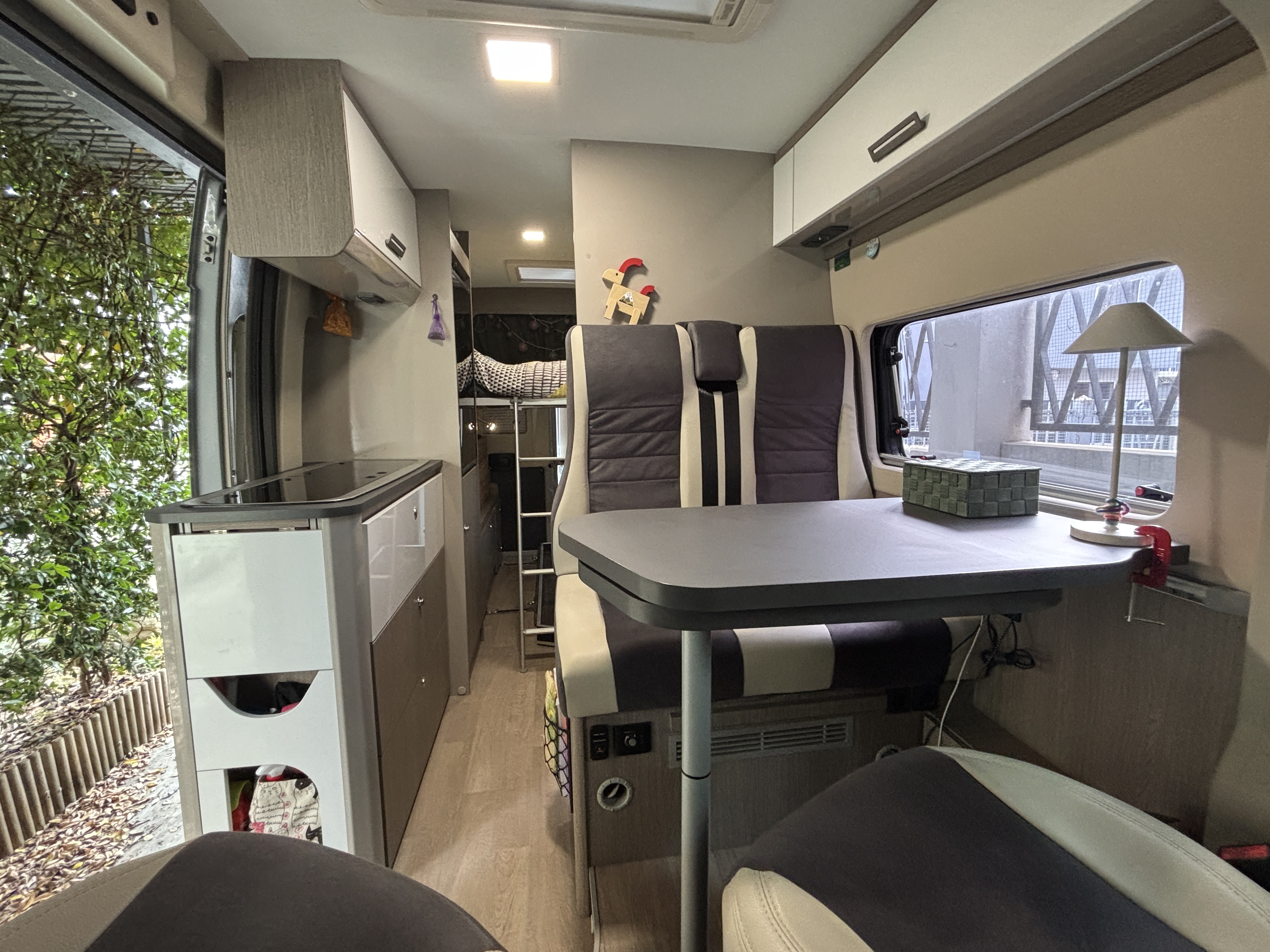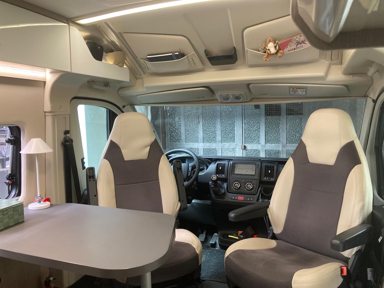 Il mezzo è full optional: antifurto volumetrico e perimetrale, retro camera, tendalino, zanzariere, sistema oscurante remis, pedana doccia, gradino estraibile elettrico, frigo trivalente, webasto, aria condizionata