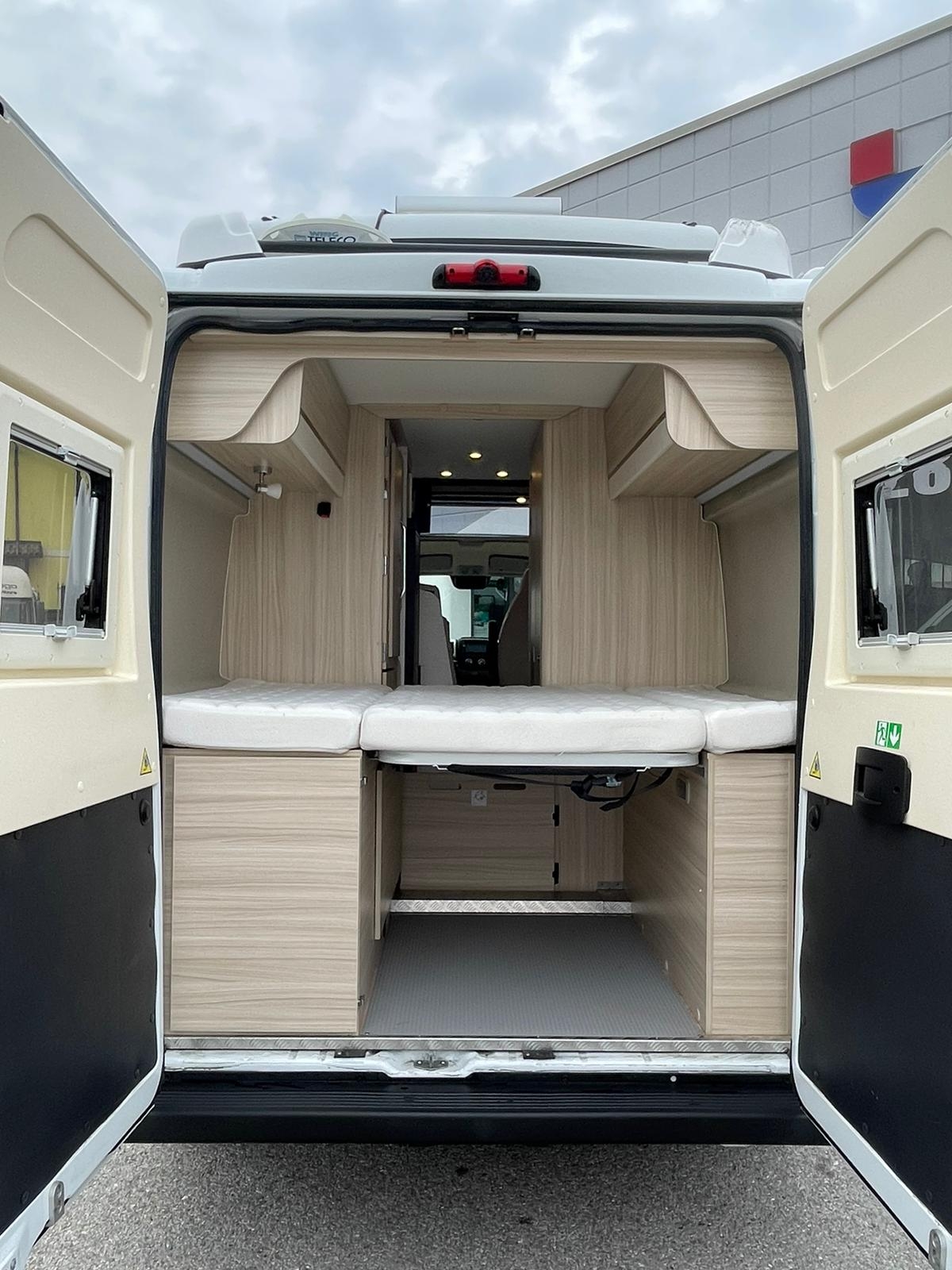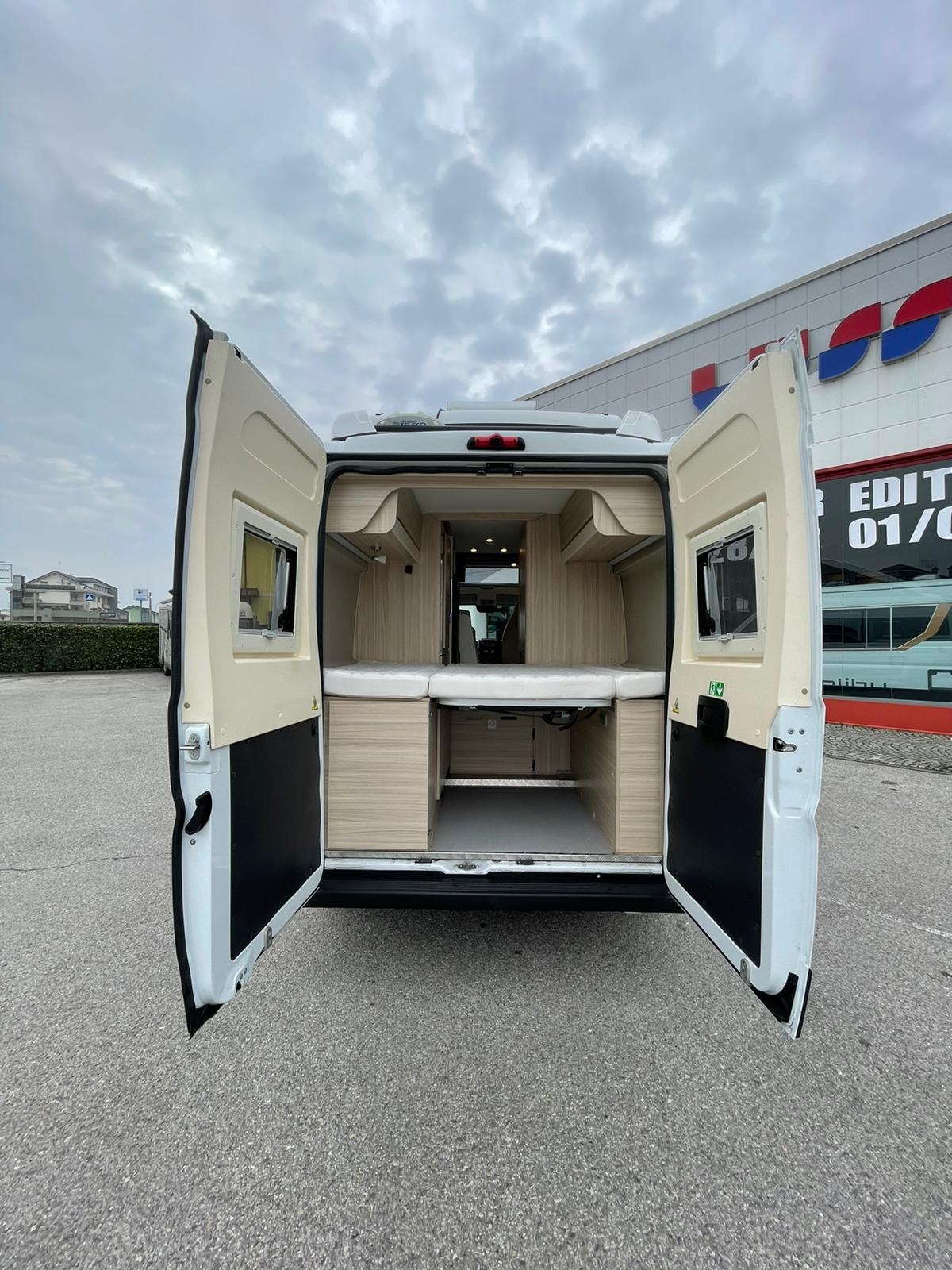 Versione White Addict, Clima cabina, Cruise control, Cerchi in lega 16’, Hill Holder + Hill Discend, Radio Doppiodin + Retrocamera + Navigatore, Scuri Remis cabina, Veranda, Zanzariera portellone, gradino elettrico, Sedili girevoli, Frigo 140 litri, Bagno con doccia separata, Riscaldamento Webasto a gasolio, Antenna Tv Terrestre + TV, Skyroof panoramico, Luce esterna, Luci Led interne, Tappezzeria in ecopelle,