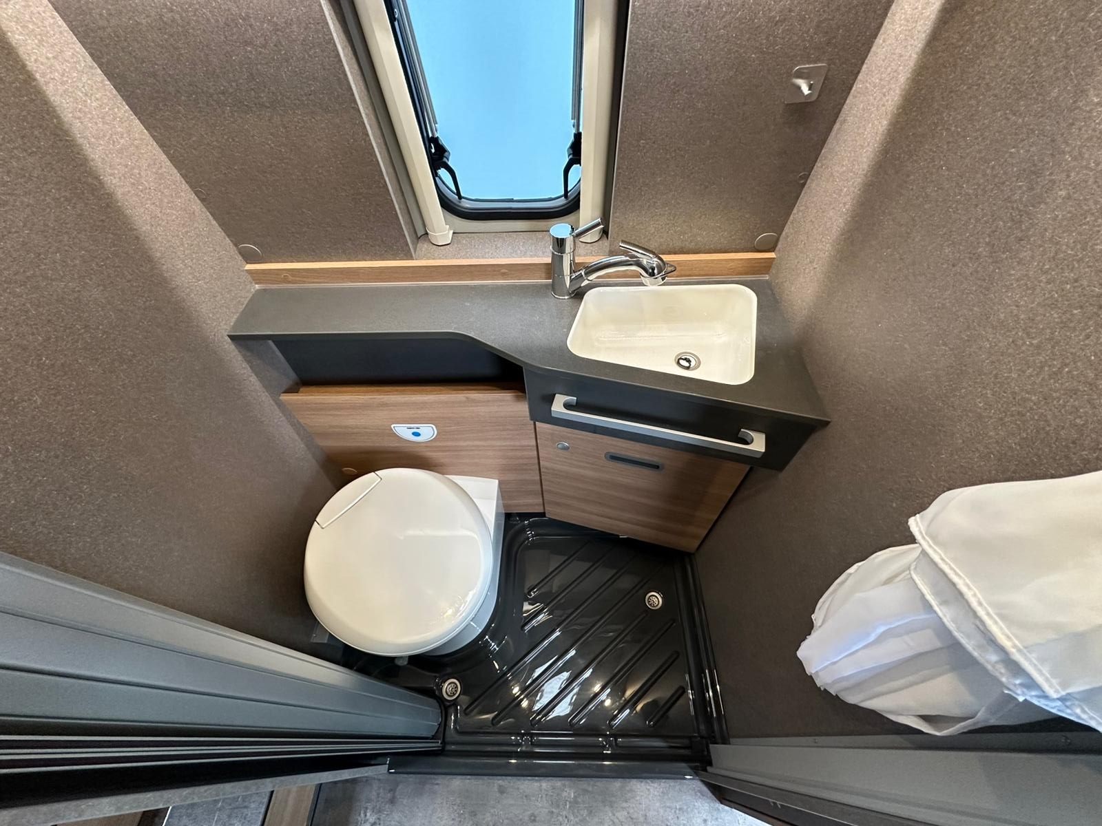 Campovolo, clima motore, frigo a compressore, gancio traino, oblò panoramico, oscuranti Remis cabina, ruote da 16”, tendalino, Traction+, 18.500 km.