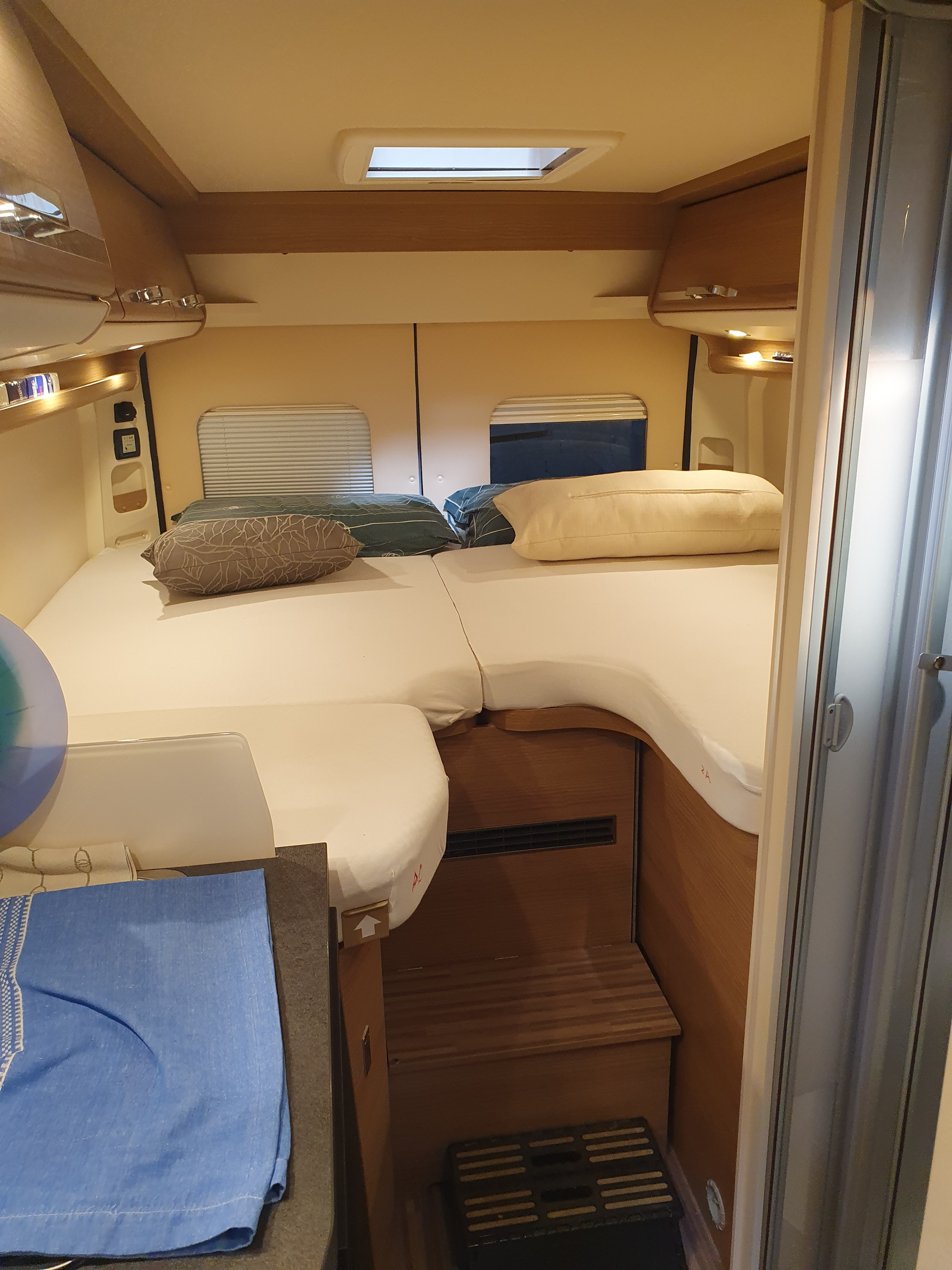 Veranda a tetto Dometic, Sintolettore Pioneer SPH-DA360DAB con viva voce + retrocamera 3° stop, Antifurto perimetrale/volumetrico + localizzatore CNA Tracher con chiamata in caso di allarme, Cerchi in lega aftermarket 16', Set corredo letto stileCherry Classic, Copertura isolante parabrezza e finestrini cabina Larcos, Due prese USB, presa 220 nel gavone sotto il letto SX e presa 12 volt mobiletto cucina.