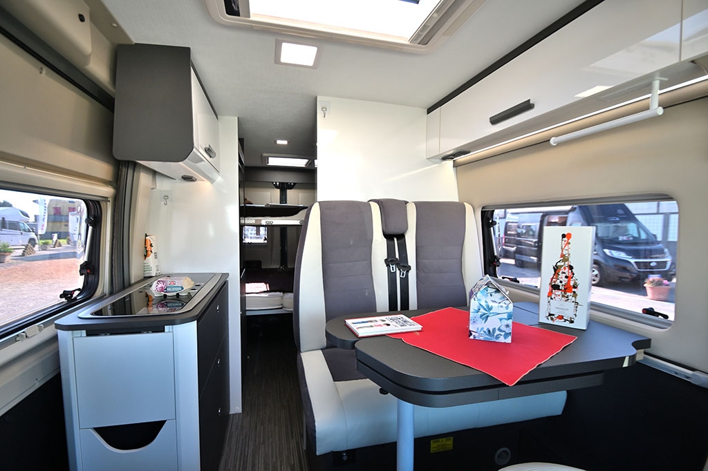 ASR + Hill Holder, Climatizzatore in cabina, Cruise Control, Specchietti retrovisori elettrici e riscaldabili, Cerchi in lega da 16, Verniciatura carrozzeria Grigio Lanzarote, Gancio traino, Tendalino, Autoradio 2DIN, Telecamera retromarcia, Pannello solare, Oscuranti plissettati in cabina, Zanzariera su portellone, Riscaldamento Webasto a gasolio, Gradino esterno elettrico