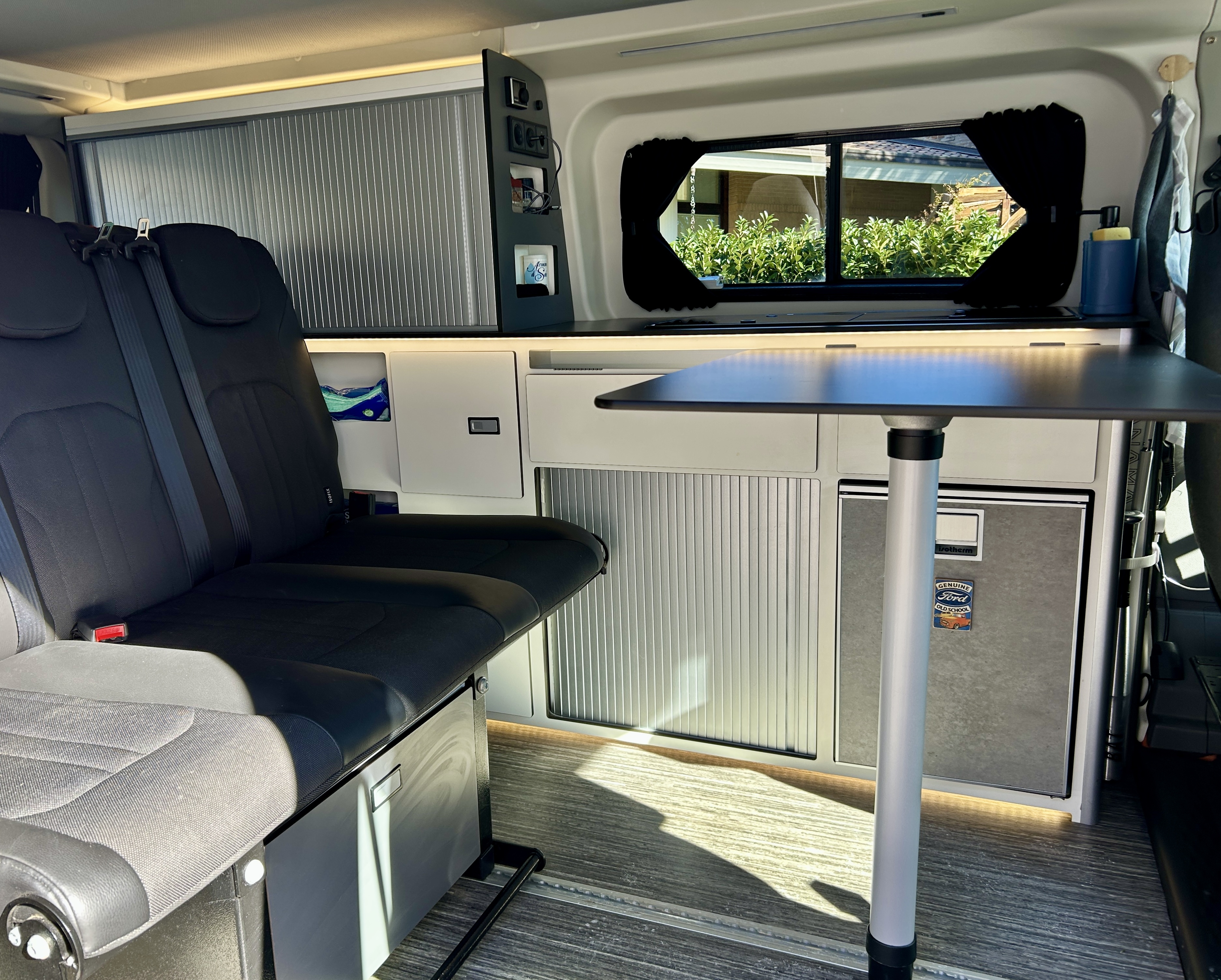 - Tavolo: removibile, utilizzabile all interno (sulla guida cucina) ed all esterno (con treppiede nuovo mai utilizzato) - stivaggio nel portellone laterale