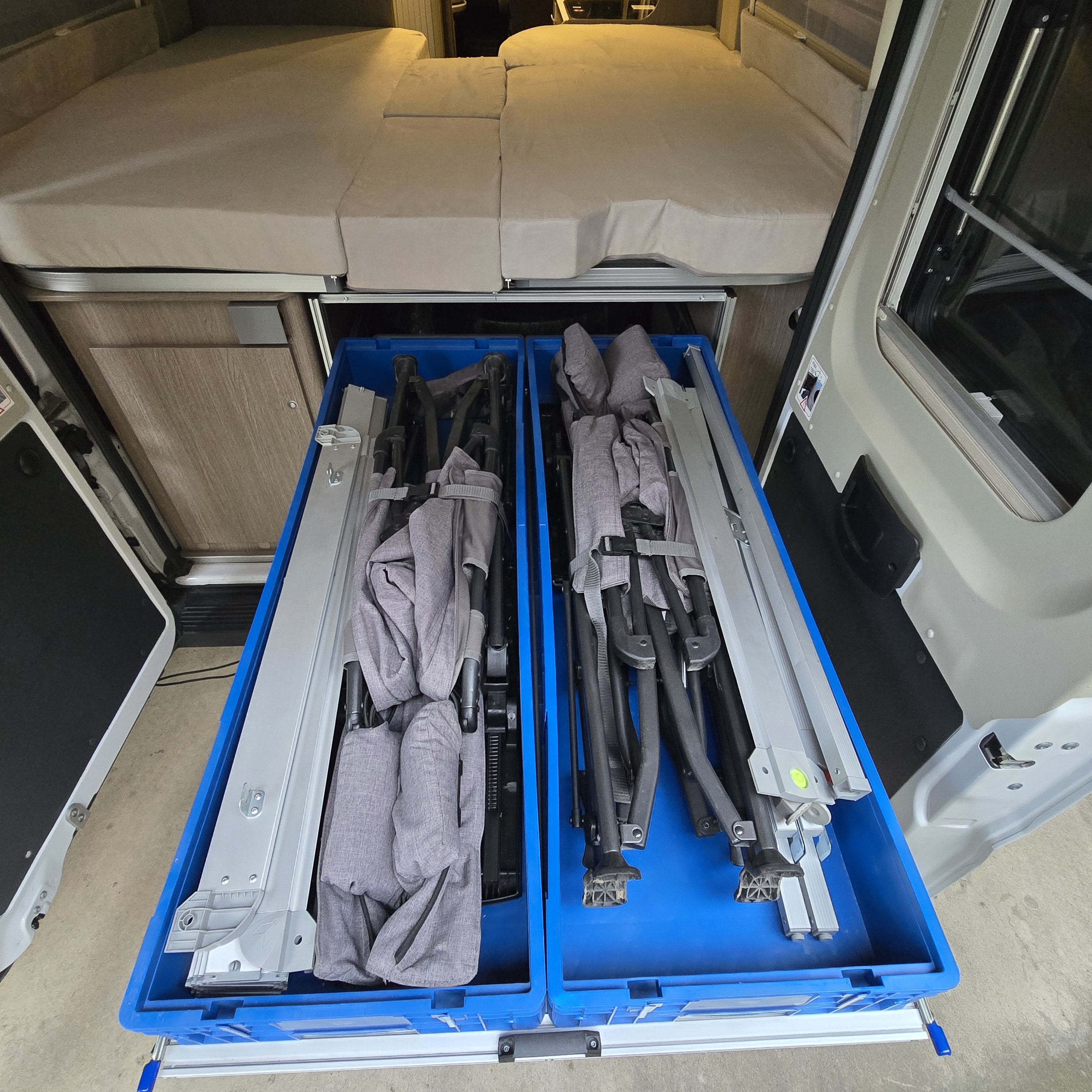 Sistema piedi stabilizzatori elettrici TESA ; Veranda FIAMMA; Pannello solare con regolatore VICTRON Mppt; Batteria Litio Zenith 100 Ah; DC/Dc Booster Orion ; Interfaccia Smart Shunt VICTRON; Ventilatore da tetto Multifunzione con telecomando mod. MAXXFAN DELUXE; Prese USB C supplementari zona giorno e notte; 2 lampade orientabili con prese USB nel tetto a soffietto; Sistema di stivaggio posteriore,struttura in alluminio, 3 piani estraibili, scorrimento su guide a sfera, portata max. Kg 70 per piano; Portabici Busbiker Rack Van XMARK--XM290 , 3 biciclette, portata complessiva Kg 80, singola bicicletta Kg 30; Gancio traino omologato