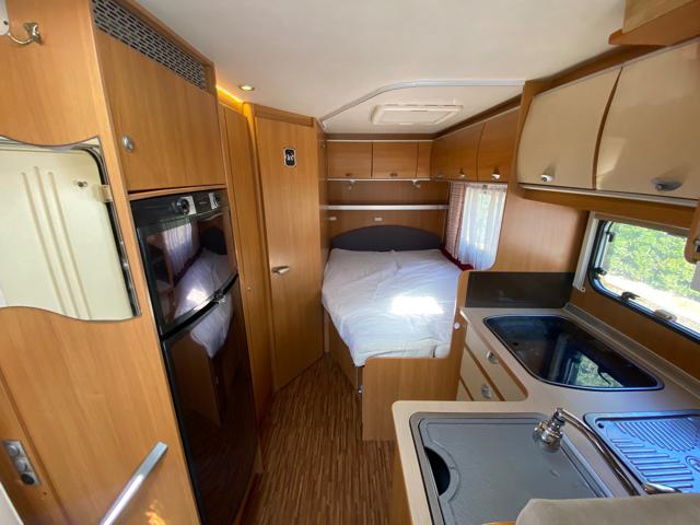 letto alla francese longitudinale posteriore con vano garage sottostante, perfetto per stivare tutto l'occorrente.