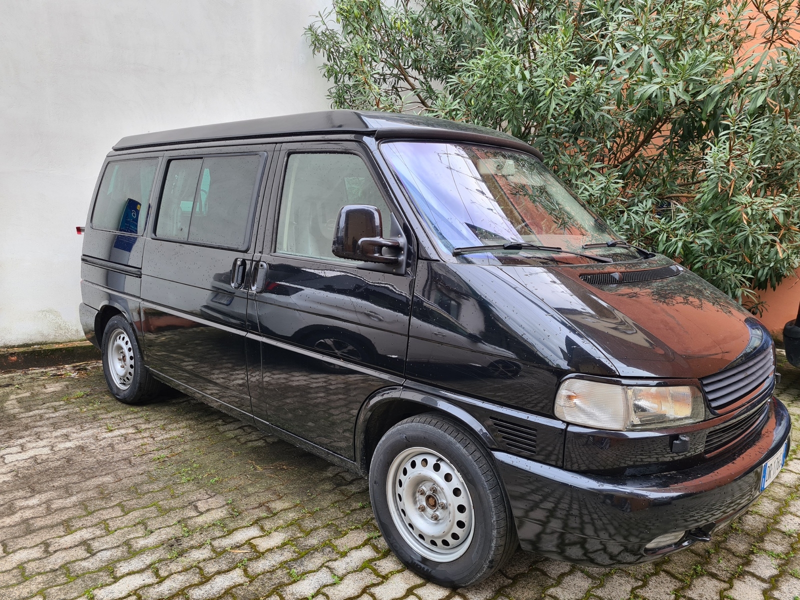 llestimento Westfalia originale, omologato camper. Dispone di 7 posti a sedere e 4 posti letto grazie al tetto a soffietto.