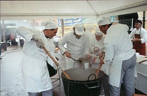 Non pensiamo che ad attrarre cosi tante persone possa essere solo il cibo, peraltro gustosissimo; la singolare coreografia dei cuochi rossi in viso, dei grossi focolai, degli enormi paioli e scolapasta, l'occasione di ritrovarsi uniti in semplicità, uniti dalla storia contribuiscono al successo di questa manifestazione che si rinnova negli anni puntualmente.