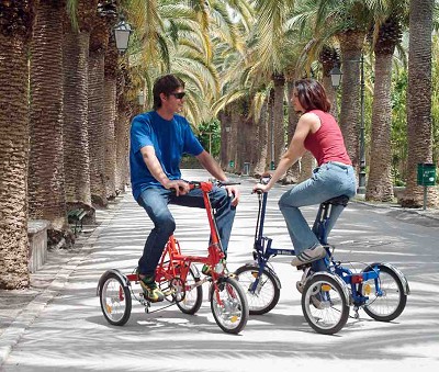 Dispiegati, sono comodi tricicli, molto utili per le persone che hanno difficoltà ad andare in bicicletta, per le persone anziane che desiderano tenersi in forma, o semplicemente per le persone che desiderano un modo diverso di pedalare.