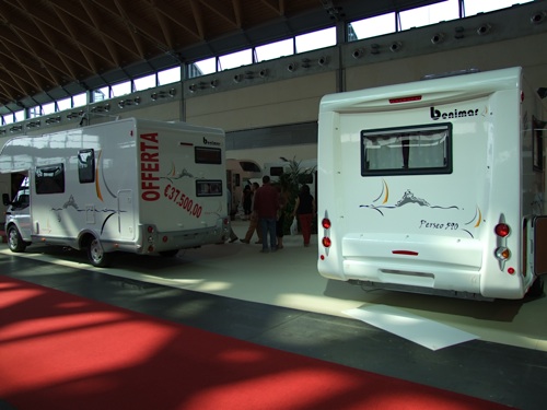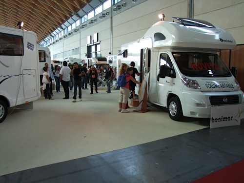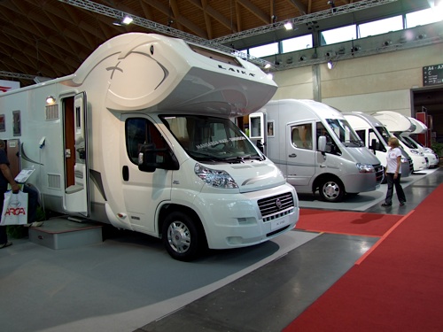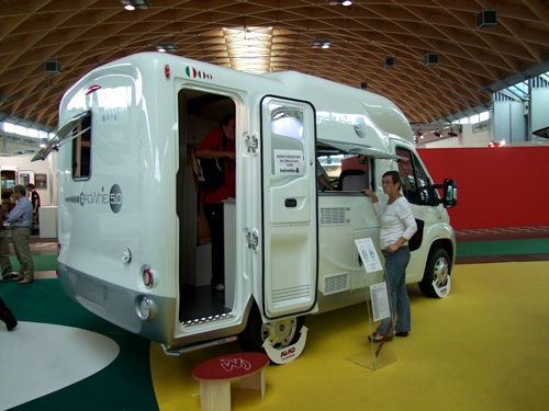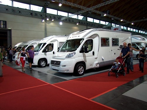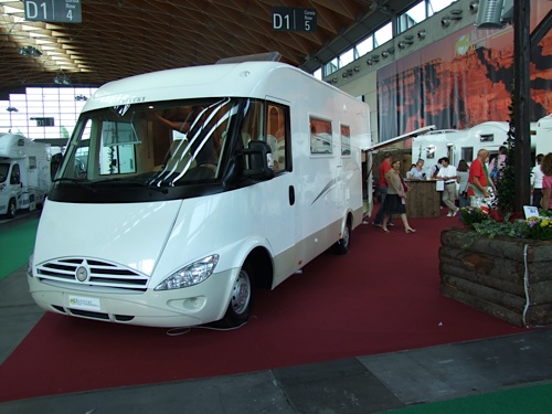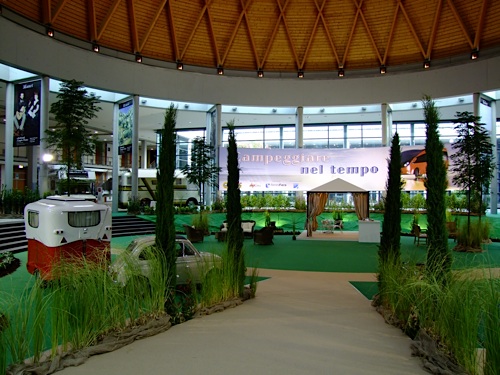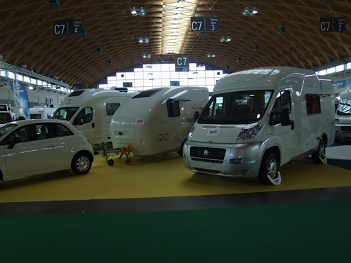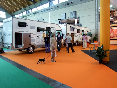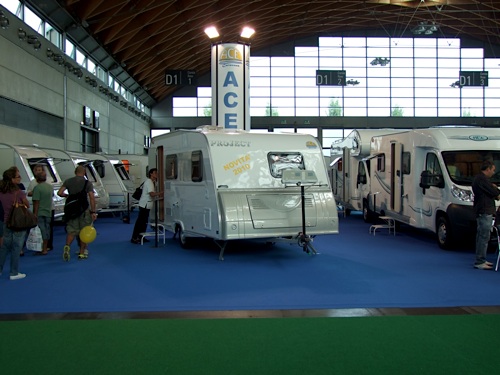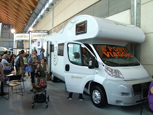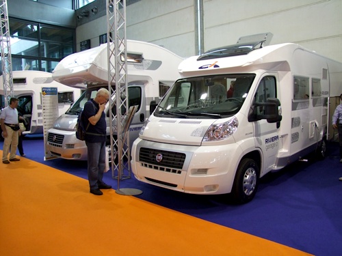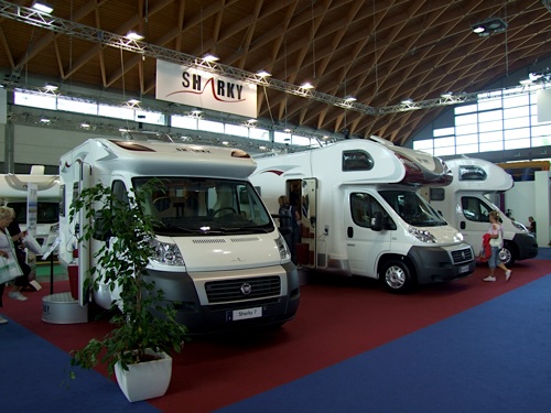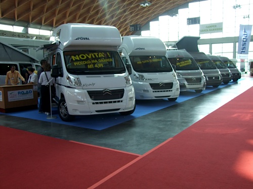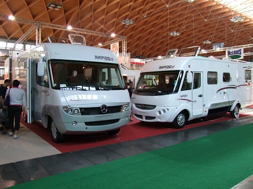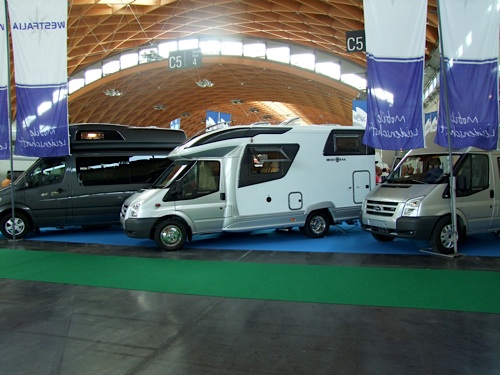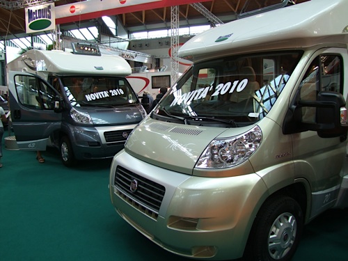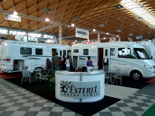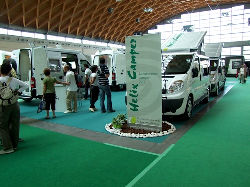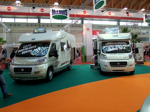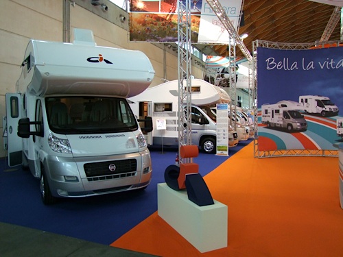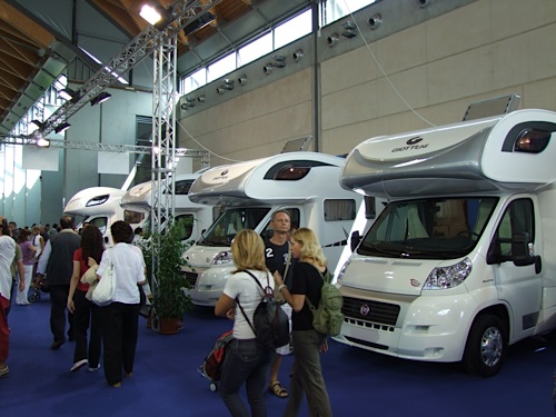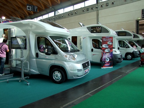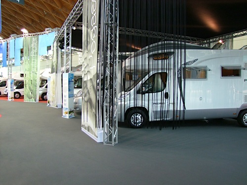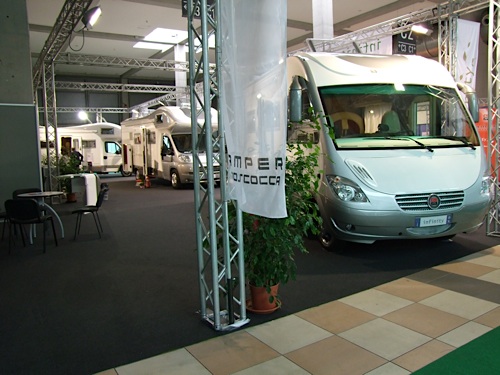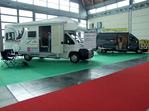 Lo stand con le due tipologie di veicoli esposte: mansardati e motorhome