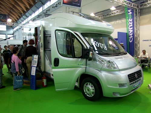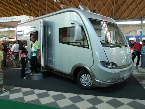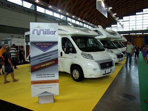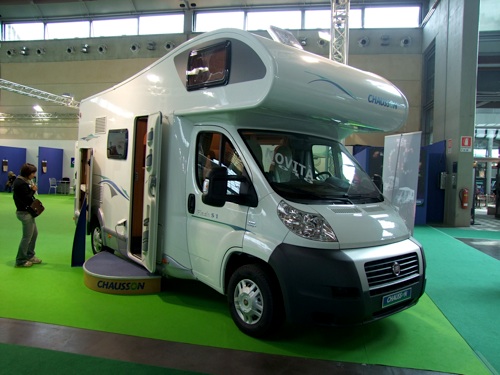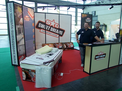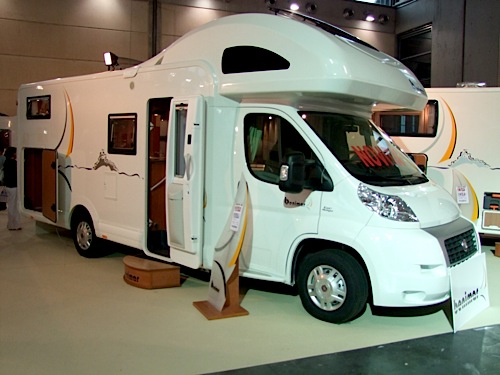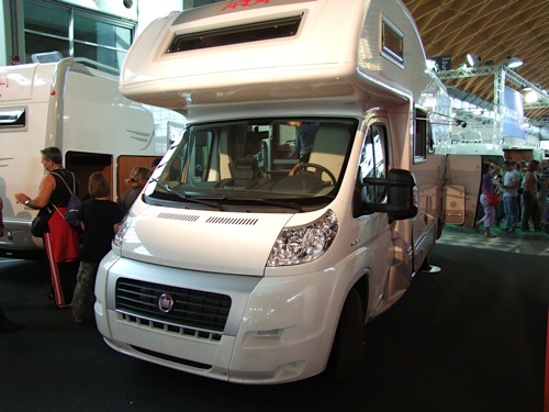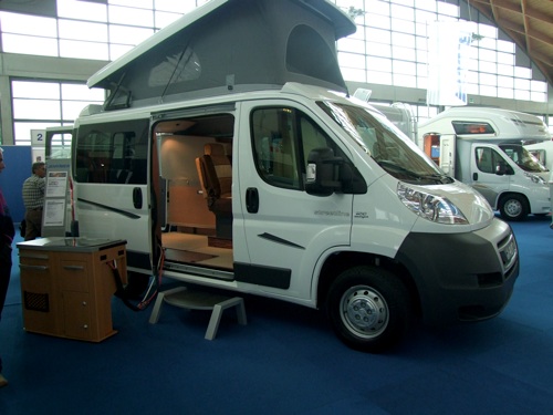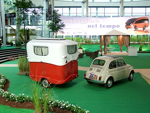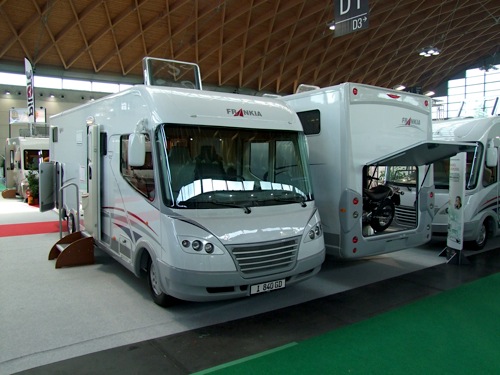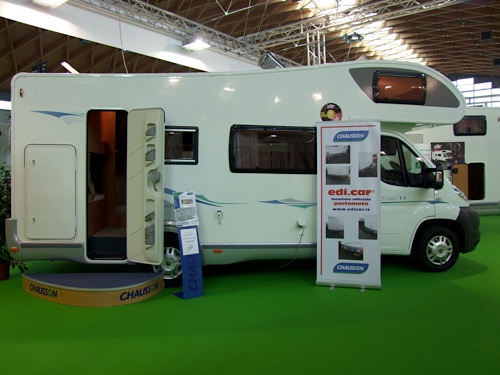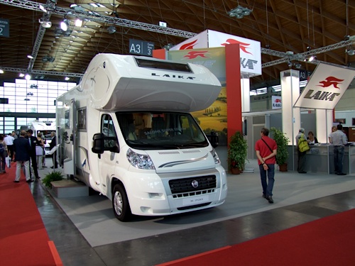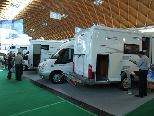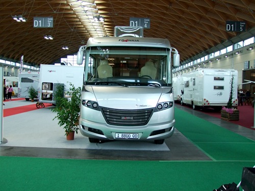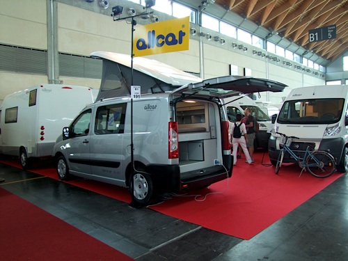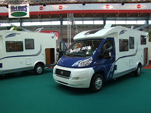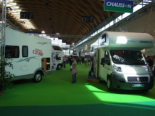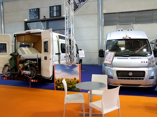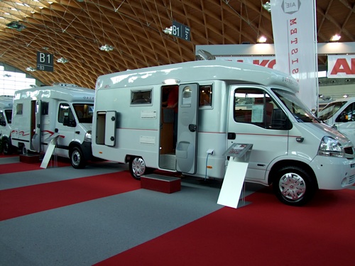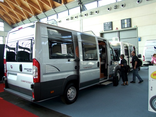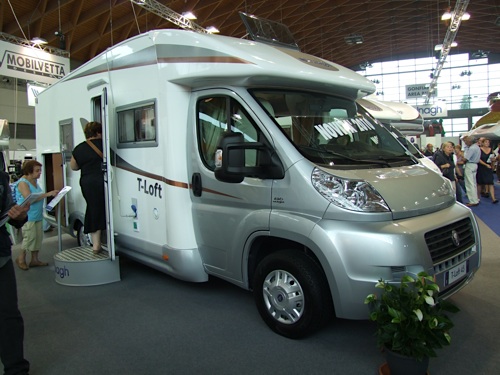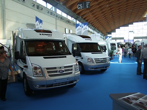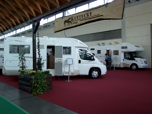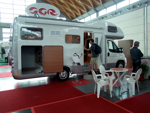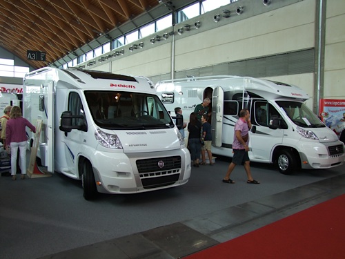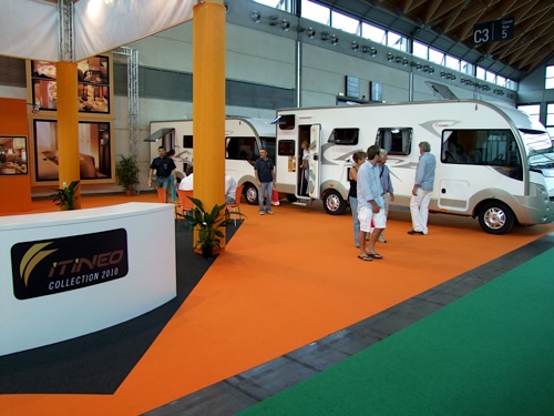 Lo stand con le due tipologie di veicoli esposte: mansardati e motorhome