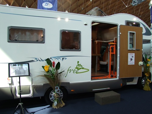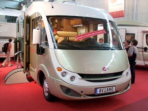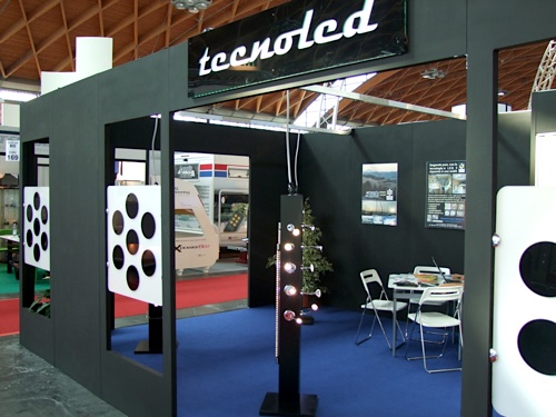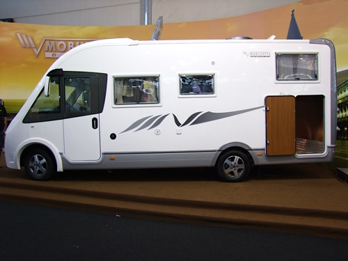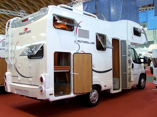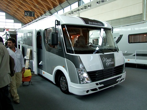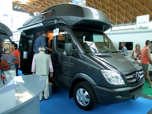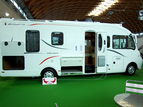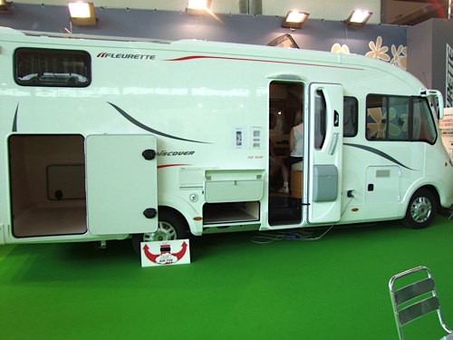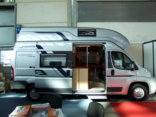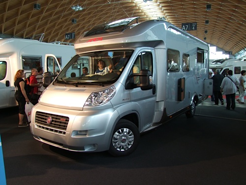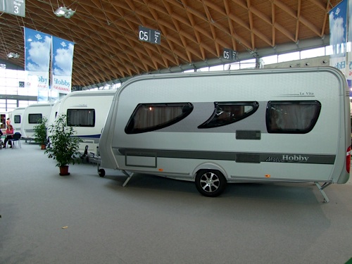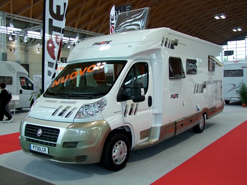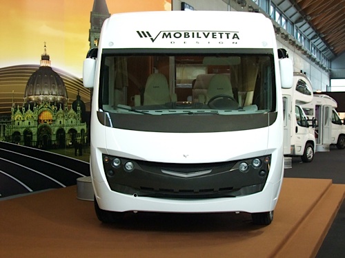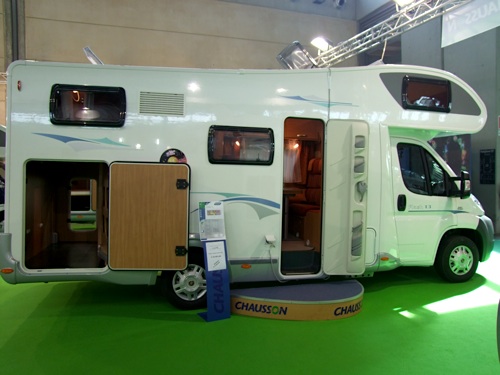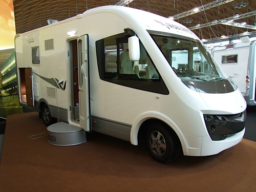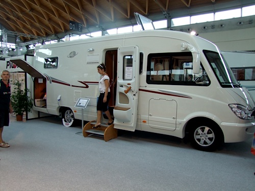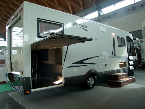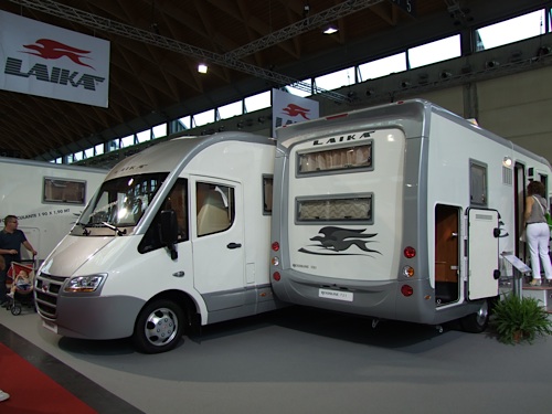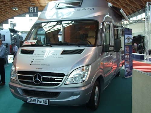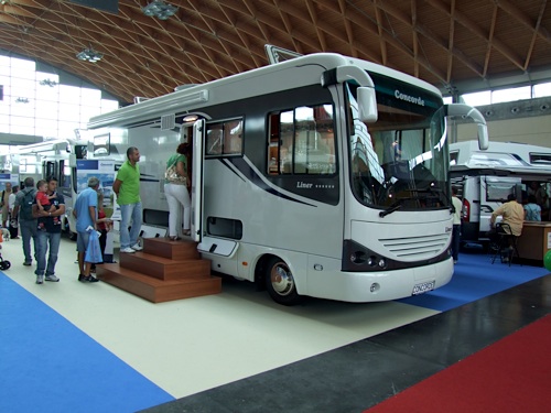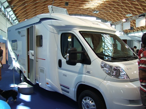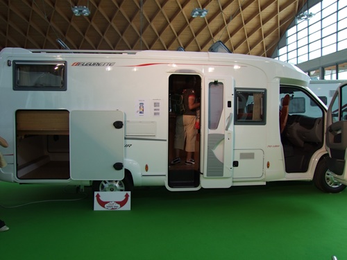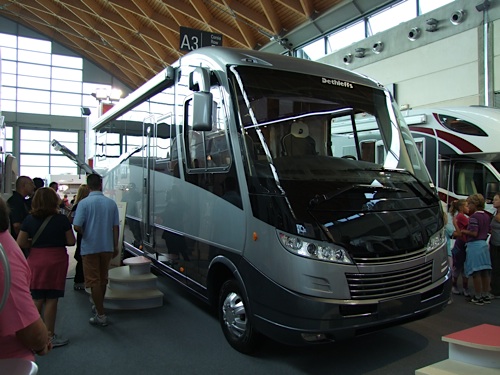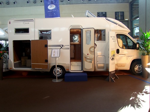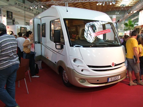 Lo stand con le due tipologie di veicoli esposte: mansardati e motorhome