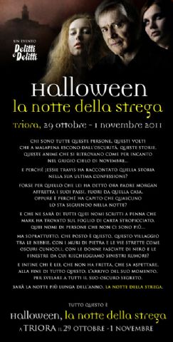 PRENOTAZIONE MANIFESTAZIONE: HALLOWEEN A TRIORA Le prenotazioni dovranno pervenire entro e non oltre il 28 Ottobre 2011, mediante un deposito cauzionale di Euro 50,00 da eseguirsi sul conto corrente intestato a: F.LLI CREA SRL Codice Iban: IT49 Q061 7549 0800 0000 1093 980 Specificando la causale: FESTA DI HALLOWEEN- TRIORA 2011 ed il numero di PARTECIPANTI.