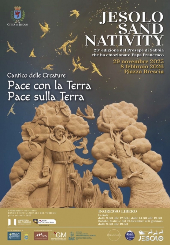 La XXIII edizione di Jesolo Sand Nativity, il famoso Presepe di Sabbia che ha incantato Papa Francesco, quest’anno ha come tema il “Cantico delle creature – Pace con la terra Pace sulla terra”. Un messaggio che intende coniugare il dialogo interreligioso con la riflessione sulla cura della nostra Casa Comune.