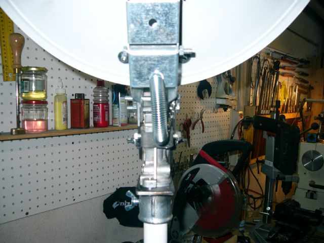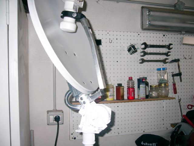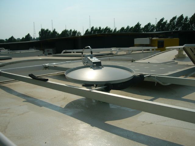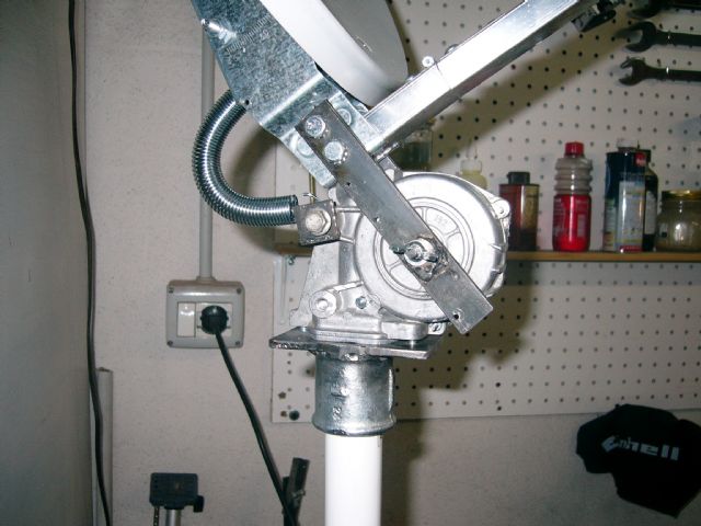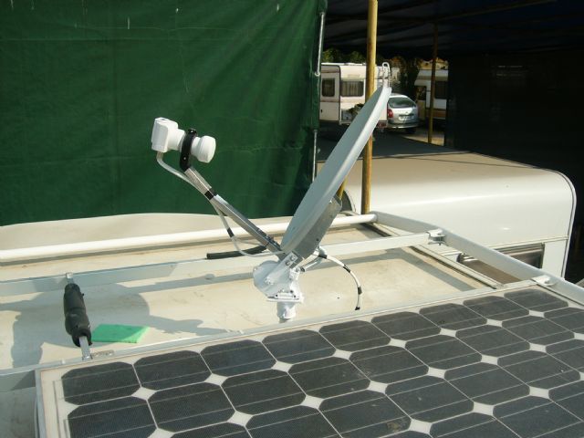 Il mio è un perfezionamento di un lavoro visto tempo fa sul web: la parabola si alza e si abbassa dall'interno del mezzo attraverso un meccanismo a vite senza fine recuperato da un alzacristalli di una automobile.