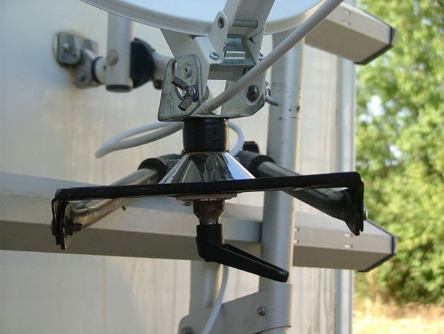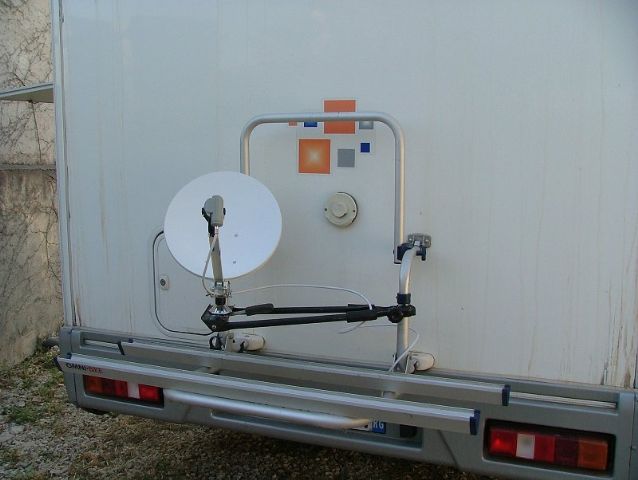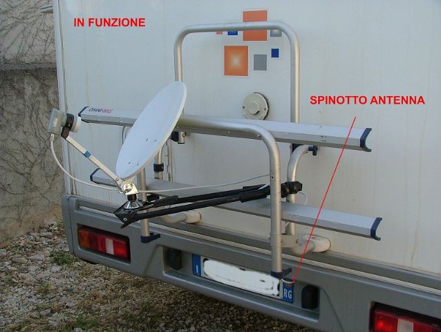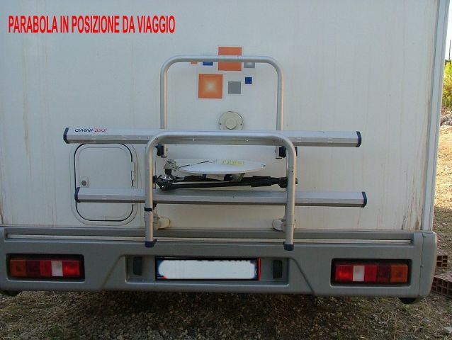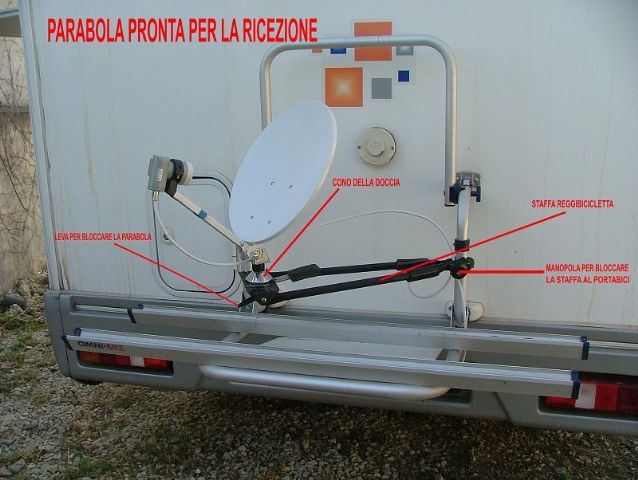 Come potete vedere dalle foto, ho installato la parabola sul portabici con la possibilità di ancorarla a destra oppure a sinistra in base alle esigenze di ricezione.