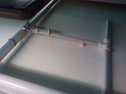 Seguendo le indicazioni dell'amico Alva, ho costruito l'antenna per digitale terrestre e pensando ad un modo semplice e pratico di installazione e orientamento ho ideato questo sistema che permette l'apertura, la rotazione e la chiusura attraverso l'oblò più vicino, che nel mio caso si trova sopra al letto alla Francese.