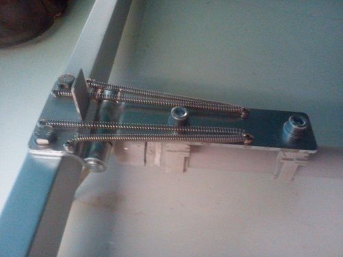 Si tratta di una cerniera cromata, alla quale ho fissato 2 molle (portate a 4 dopo aver verificato il bisogno di un po' di spinta in più) con viti autofilettanti e una squadrettina in alluminio che funge da fermo in alzata.