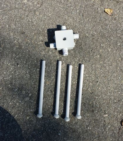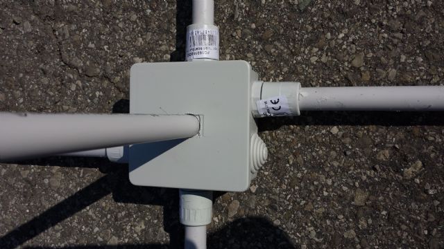 I 4 piedini e la scatola da elettricista usata come base li ho appesantiti con sassi bloccati con silicone.
