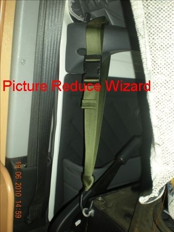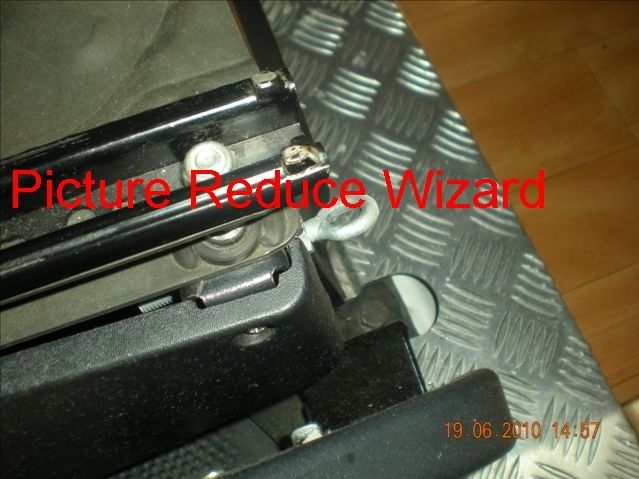 utilizzando il foro esistente nella parte posteriore del sedile ,è stato istallato il tassello con relative rondelle e contro dado, preparata la fascia con la esse si blocca lo sportello,il tutto non crea disturbi alla rotazione dello sportello.