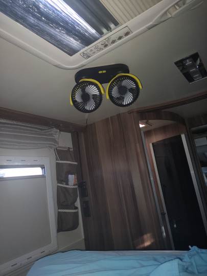Installazione semplice di una coppia di ventilatori a tre velocità, indipendenti tra loro, sul soffitto di un letto nautico, in modo che ognuno abbia la possibilità di gestire il proprio flusso d'aria.