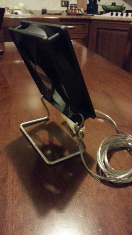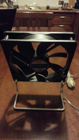 Cercavo un supporto orientabile ma non avendo nulla sottomano ho realizzato un telaino con il quale tengo il ventilatore e devo dire che il risultato è eccellente.