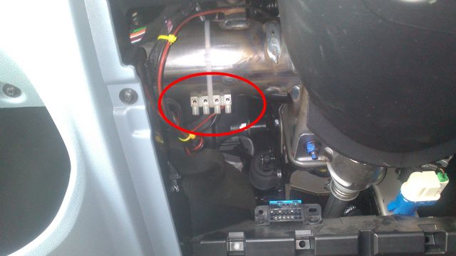 Ho pensato quindi di mettere una semplice predisposizione sotto il volante dove poter “attingere”: si tratta di un cosiddetto “mammuth” fissato in modo stretto con una fascetta al montante che sorregge lo sterzo.