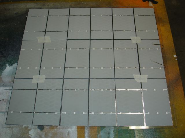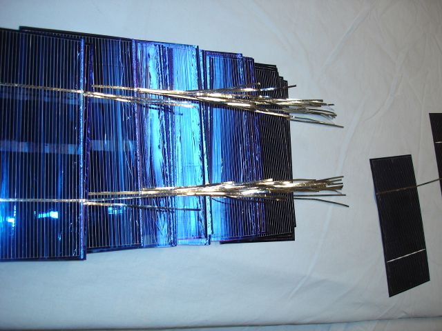 Le tre stringhe su un pannello di lexan per dare maggiore resistenza tra vetro e celle