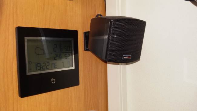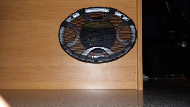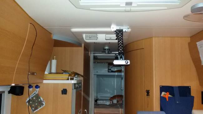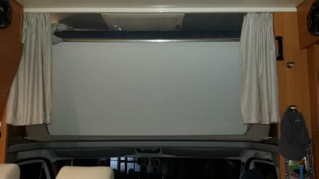 Oltre la televisione: video proiettore con audio bluetooth attaverso autoradio, casse a 3 vie + surrond posteriore e subwoofer su schermo da 54"