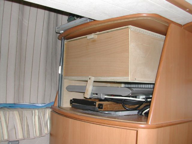 Il problema è presente su molti camper, se escludiamo quelli di fascia alta che fanno uscire l'Lcd dal basso, occultato in genere in qualche imbottitura della dinette.